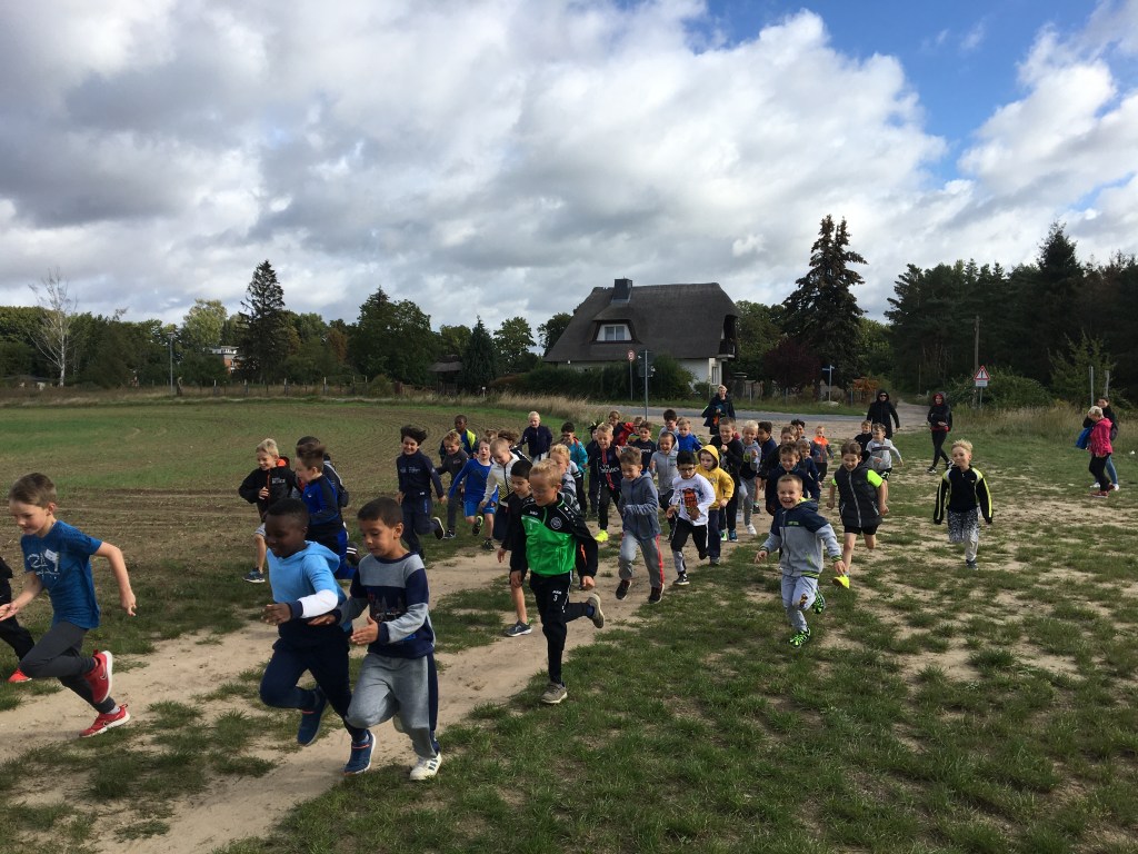 Die Streckenlängen sind gestaffelt und begonnen haben die 4. Klassen. Dabei legen die Viertklässler eine Strecke von über 1000m zurück. Die ersten Klassen sind zum Schluss gelaufen. Die ersten 6 Jungen und 6 Mädchen jeder Klassenstufe wurden am Dienstag mit einer Urkunde ausgezeichnet. Hier seht ihr ein paar Eindrücke vom Herbstcrosslauf. Die Motivation war bei allen Kindern hoch!