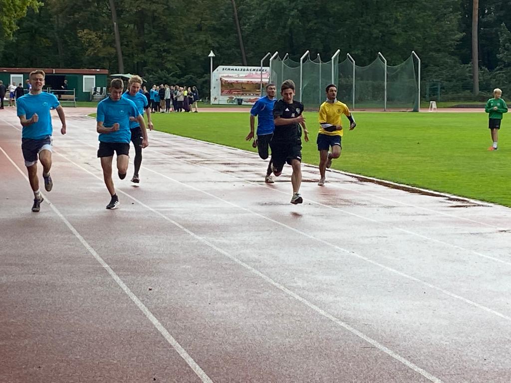 Die Wettkämpfe begannen mit den Läufen der Schulstaffeln. Wir hatten fleißig geübt, waren gut vorbereitet und hoch motiviert. Im ersten Lauf gaben alle unserer Staffelläufer ihr Bestes und auf der Zielgeraden sicherten wir uns den Sieg im ersten Lauf. Dann hieß es bangen und hoffen. Hatte es gereicht? War unsere Zeit die beste? Am Ende erreichte unsere Schulstaffel einen hervorragenden 4. Platz im Starterfeld von 12 Staffeln. Glückwunsch!