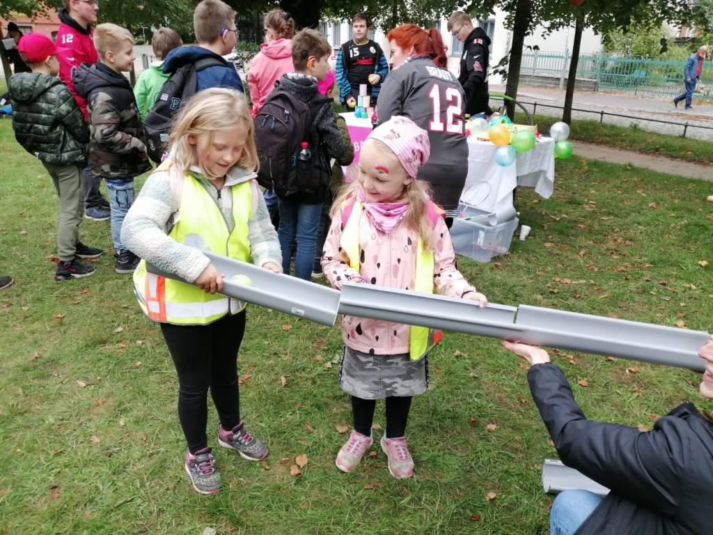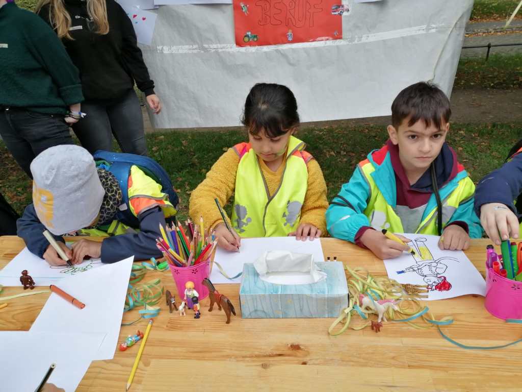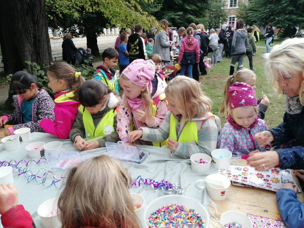 Anschließend gab es auf dem Domplatz viele verschiedene Mitmach-Angebote. Die Kinder konnten sich schminken lassen, sich verkleiden, trommeln, basteln, malen, sportliche Geschicklichkeitsübungen absolvieren und vieles mehr. Für das leibliche Wohl war mit einem Obststand auch gesorgt.