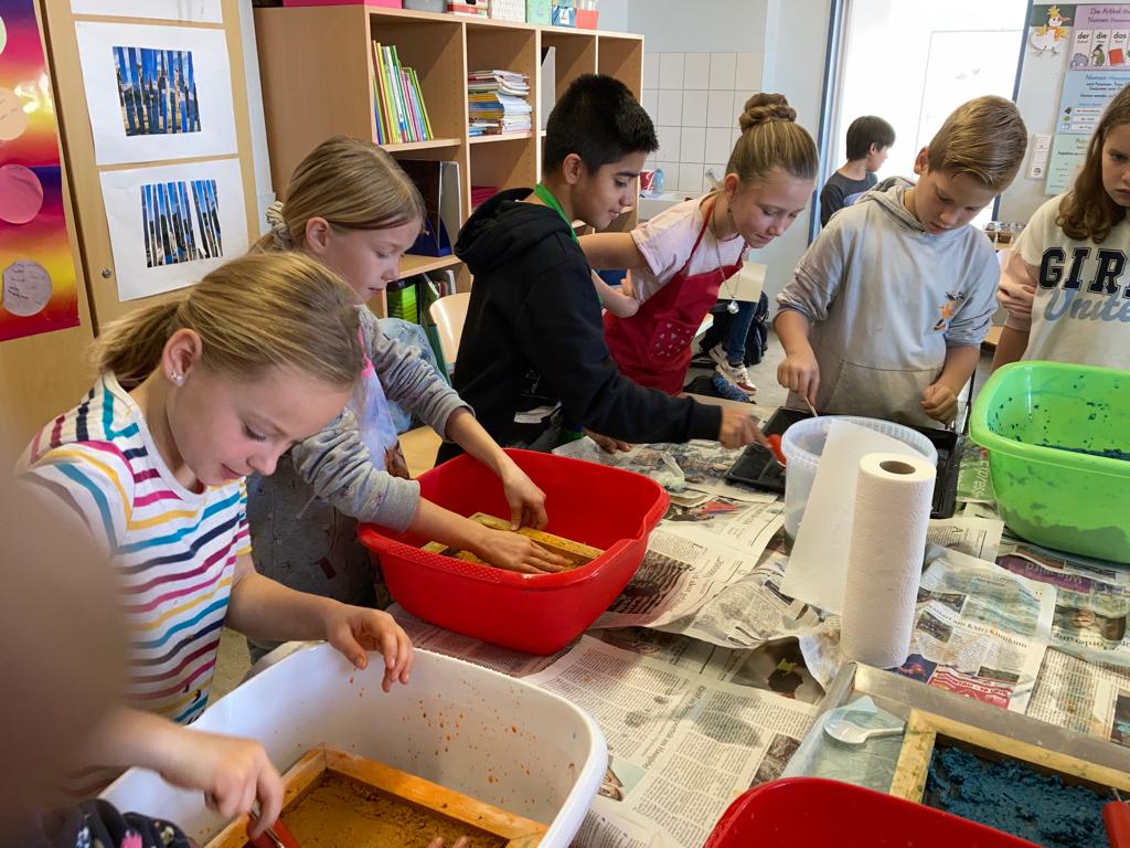 Die Klasse 4a schöpfte selbst Papier: