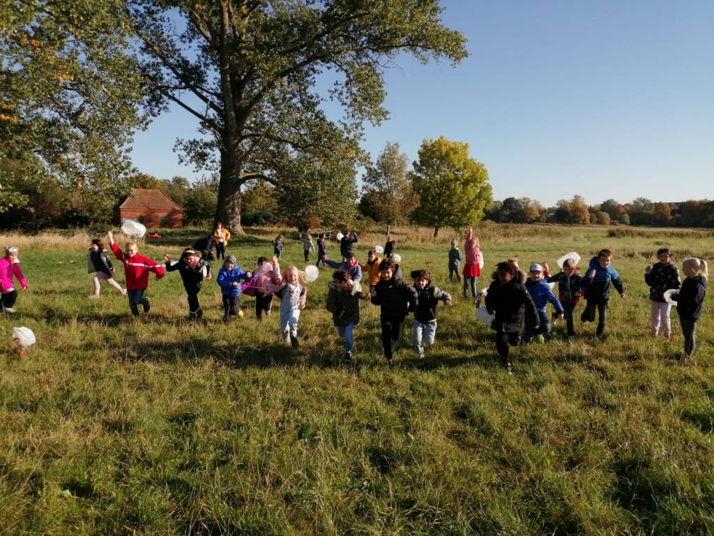 Die Klasse 2c nach dem Blättersammeln: