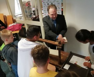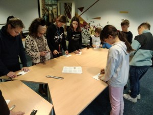 Dieser Frage gingen die Schülerinnen und Schüler der Klassen 5a,5b,5c und 6a in der Woche vom 14.11.-18.11.2022 nach, indem jede Klasse an einem anderen Tag die Uwe Johnson Bibliothek besuchte. Dort erklärte der Bibliotheksleiter Herr Wesolowski den Mädchen und Jungen den Vorgang der Buchentstehung. Die Kinder erfuhren, dass eine spezielle Falttechnik sowie die richtige Schnitttechnik enorm wichtig sind. So entstehen zunächst einzelne Hefte. Damit ein Buch daraus wird, müssen die einzelnen Hefte zusammengenäht werden. Weiterhin lernten die Schülerinnen und Schüler, dass Bücher früher enorm wertvoll und teilweise mit Gold sowie einem Schloss versehen waren. Wer so ein Buch besaß, zeigte damit allen, dass er ziemlich reich war.