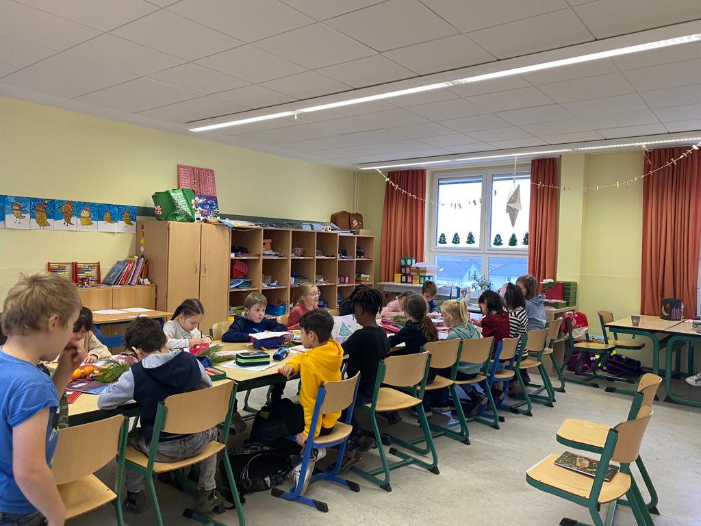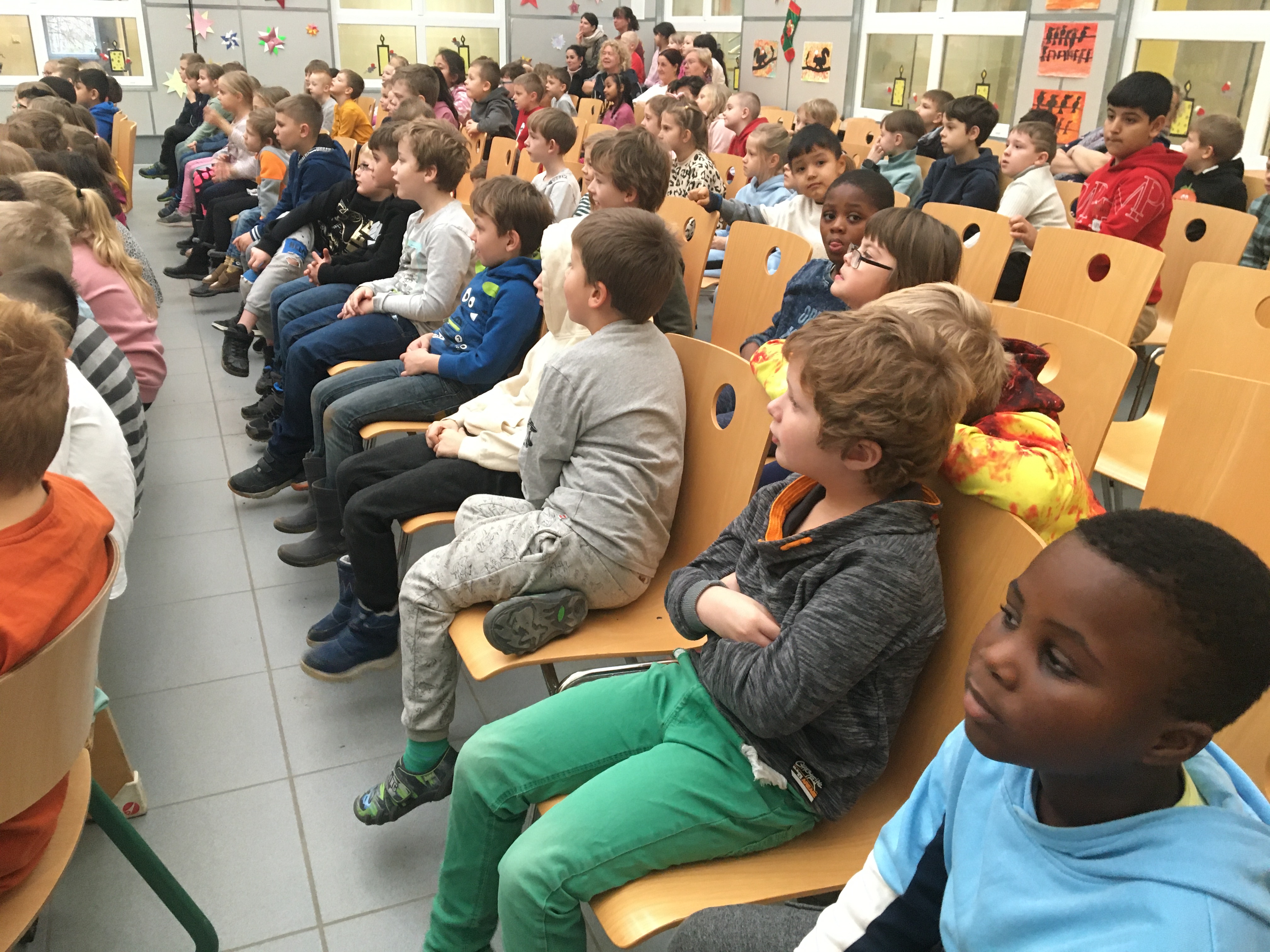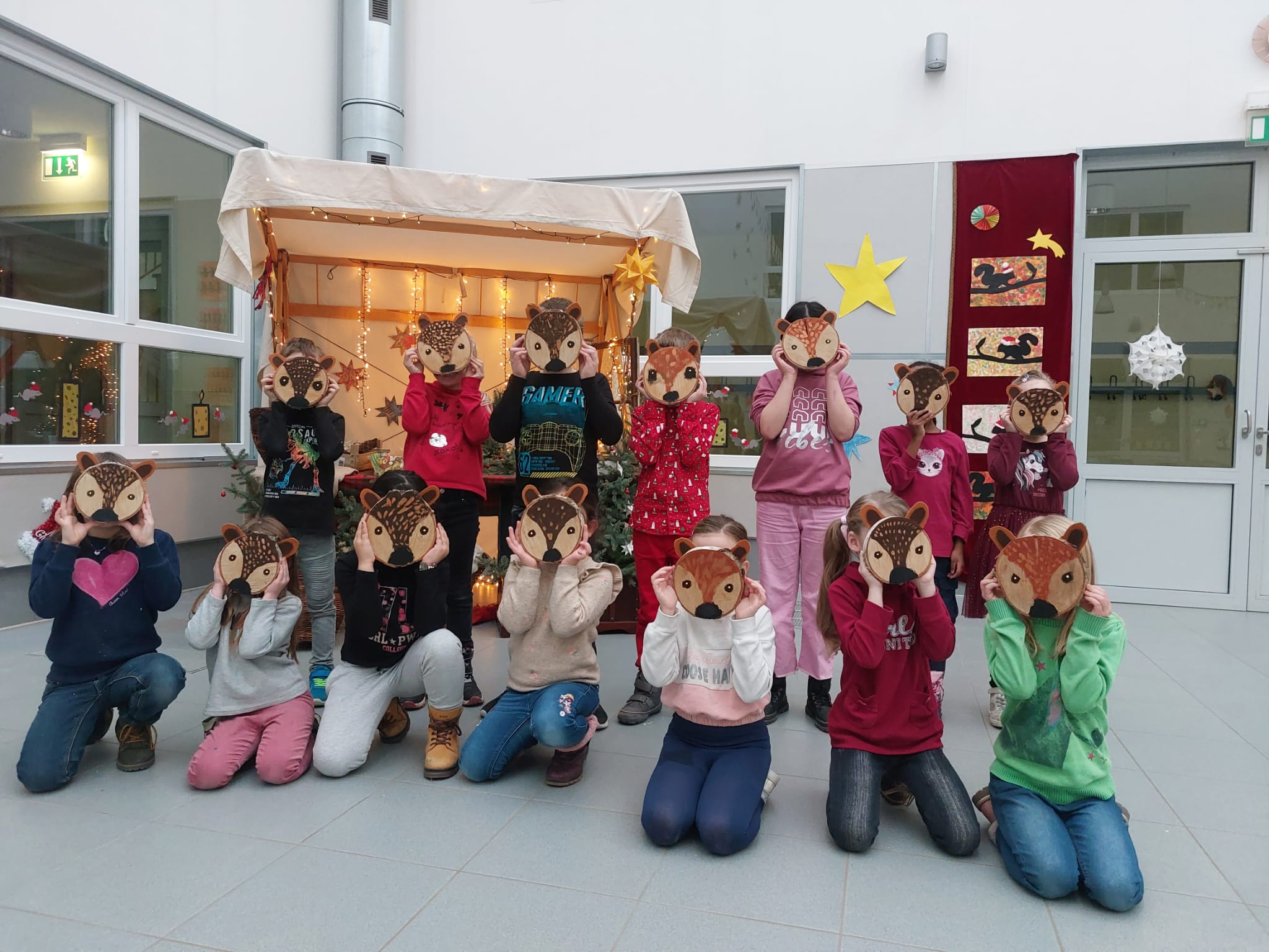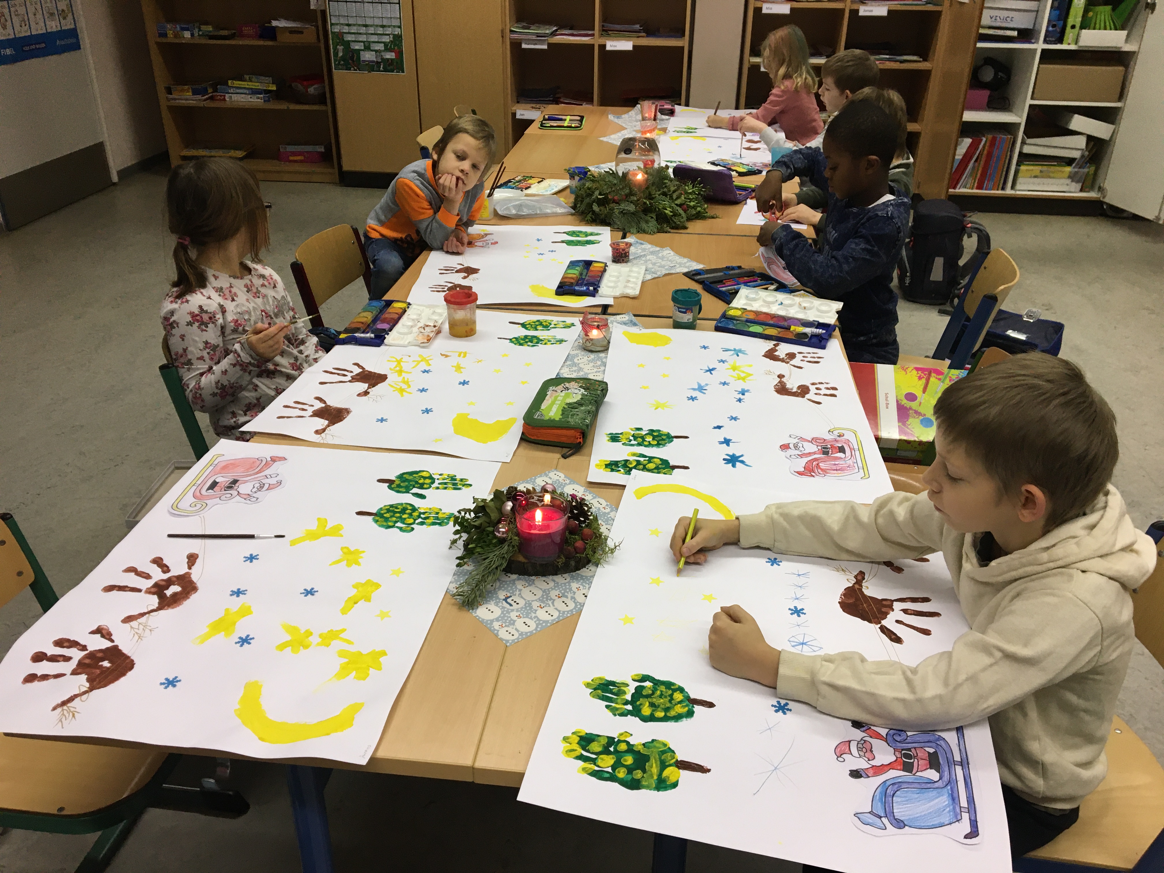 Die ersten Klassen feierten eine Adventsstunde zusammen. Alle Schüler und Schülerinnen sangen in der Aula gemeinsam gelernte Lieder und trugen einander Gedichte vor. Unsere wunderbare Schülertheatergruppe spielte uns ein weihnachtliches Stück vor. Man sollte nie aufhören, an Wunder zu glauben, besonders nicht an Weihnachten. Die Gemeindepfarrerin Frau Burwitz besuchte ebenfalls die Adventsstunde und spielte den Kindern anhand des Liedes „Alle Jahre wieder“ die Weihnachtsgeschichte vor.