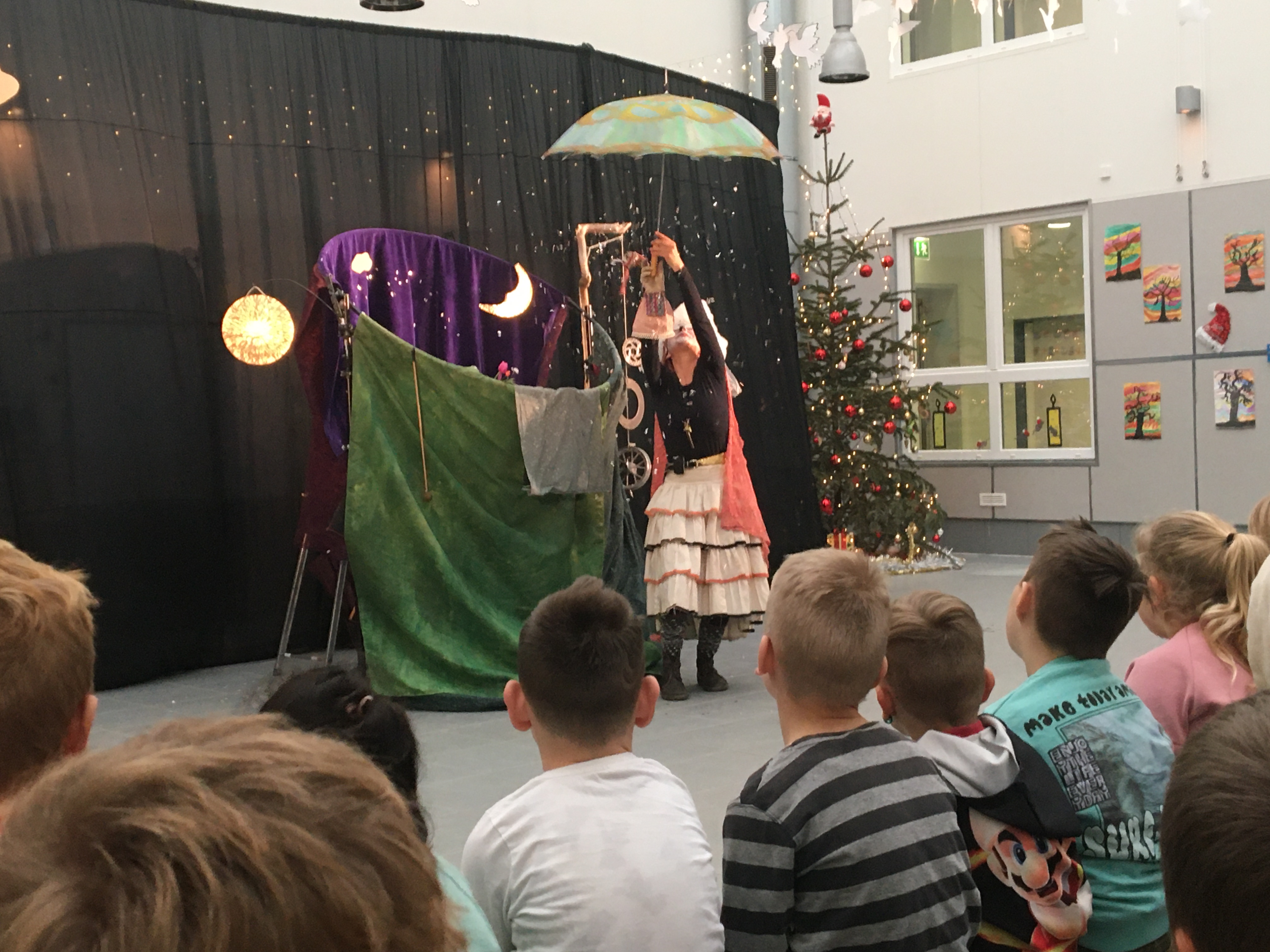 Die Grundschule konnte auch in diesem Jahr wieder das Puppentheaterspiel von Frau Zinnecker an unsere Schule locken. Unsere Schüler und Schülerinnen waren sehr verzaubert von der Darstellungskunst, der kreativen Bühnengestaltung und den Effekten und bedachten das Märchen von Frau Holle mit sehr viel Applaus – auch zwischendurch immer wieder. Märchenkenntnis bewiesen unsere Kinder, in dem sie entsprechende Textstellen mitsprachen, wie „Hol mich raus“ oder „rüttel mich und schüttel mich“. Es war wieder einmal ein wunderbares Schauspiel. Die größeren Klassen, unsere dritten und vierten, erlebten ein Märchen im Güstrower Theater in der Stadt.