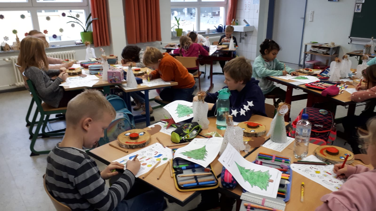 In der 2a wurden aus Baumscheiben kurzerhand süße Rentiere.