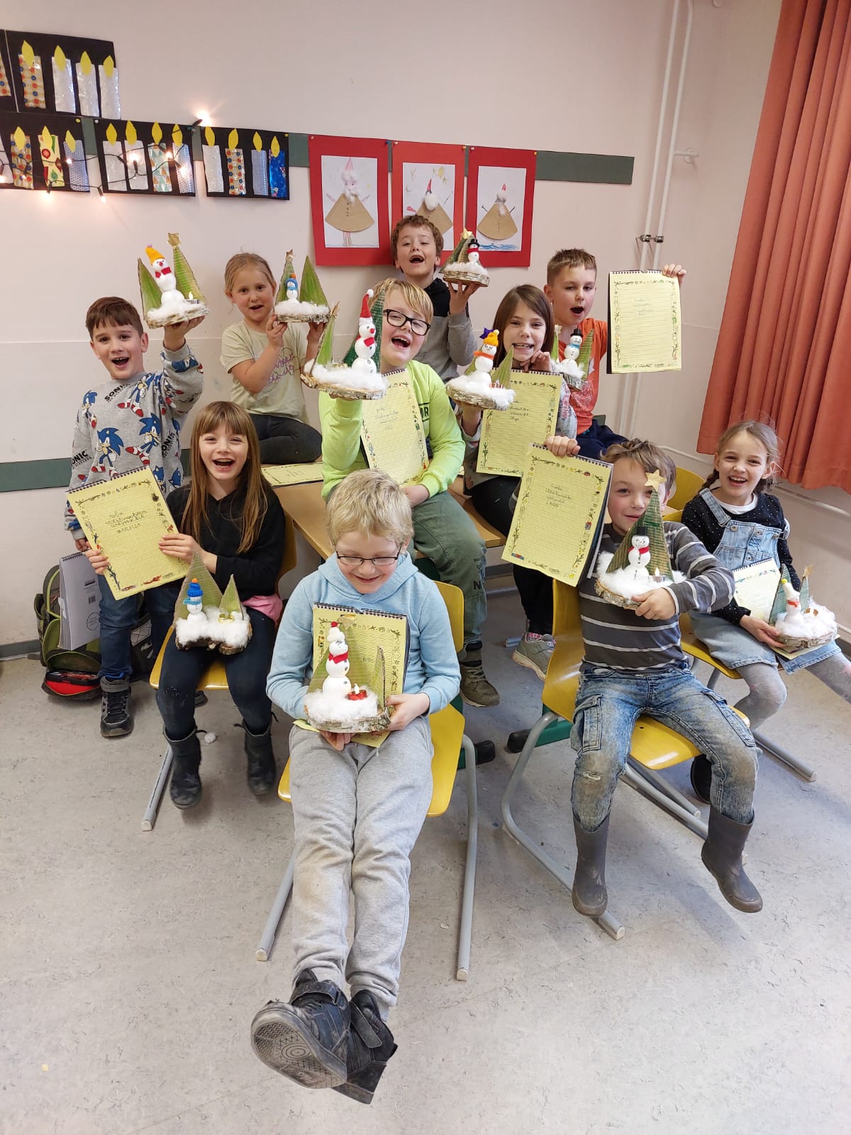 Grüße aus der DFK1b, in der Kalender und Schneemänner gebastelt wurden.