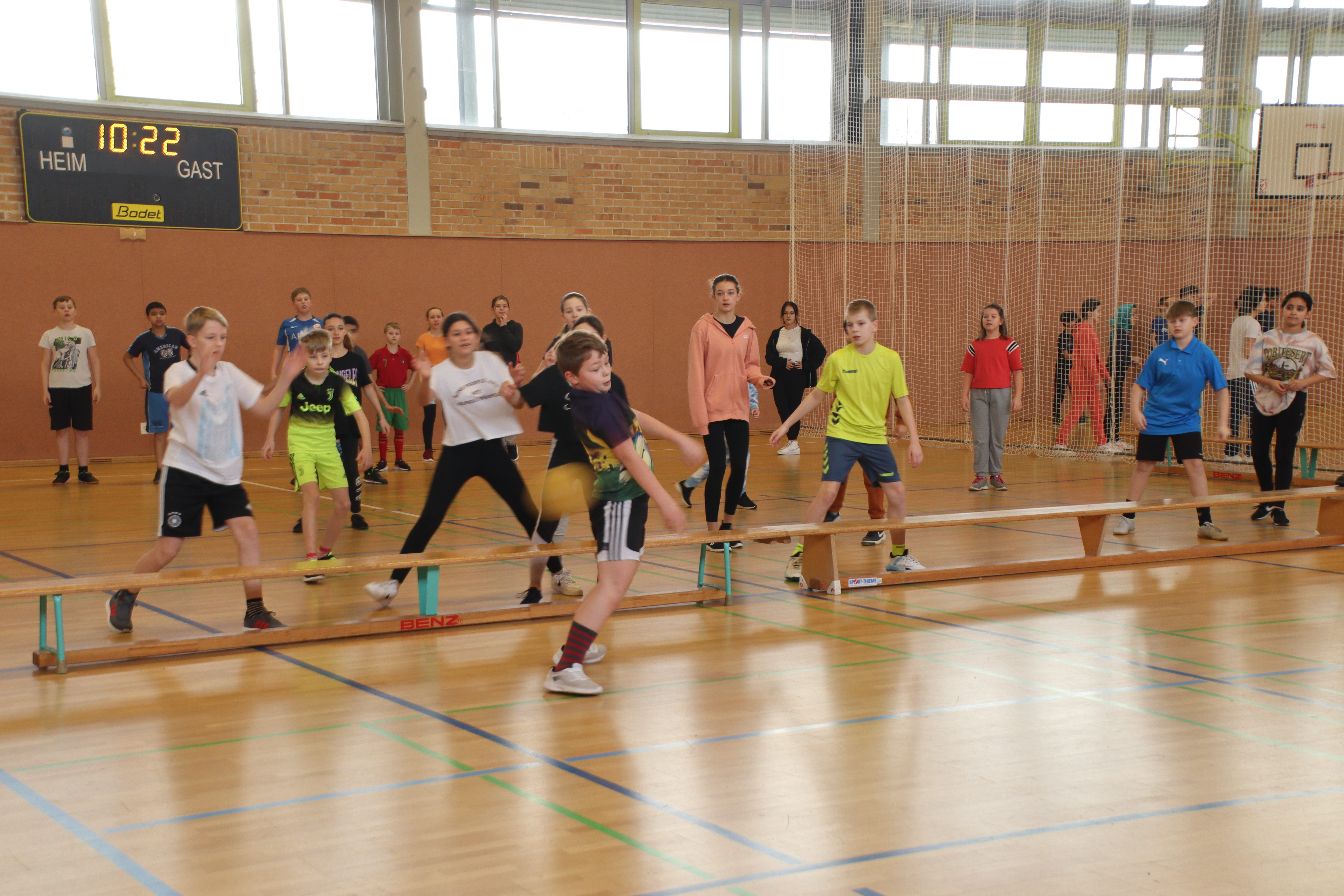 Traditonsgemäß trafen sich unsere fünften, sechsten und siebten Klassen in der 3.-6. Stunde am 01.02.2023 in unserer Schulturnhalle, um die beste Klasse im Zweifelderball zu ermitteln. ALLE Klassen der Stufe 5, 6 und 7 nahmen teil, 8 Mannschaften stellten die Sportlehrer vor eine organisatorische Herausforderung.