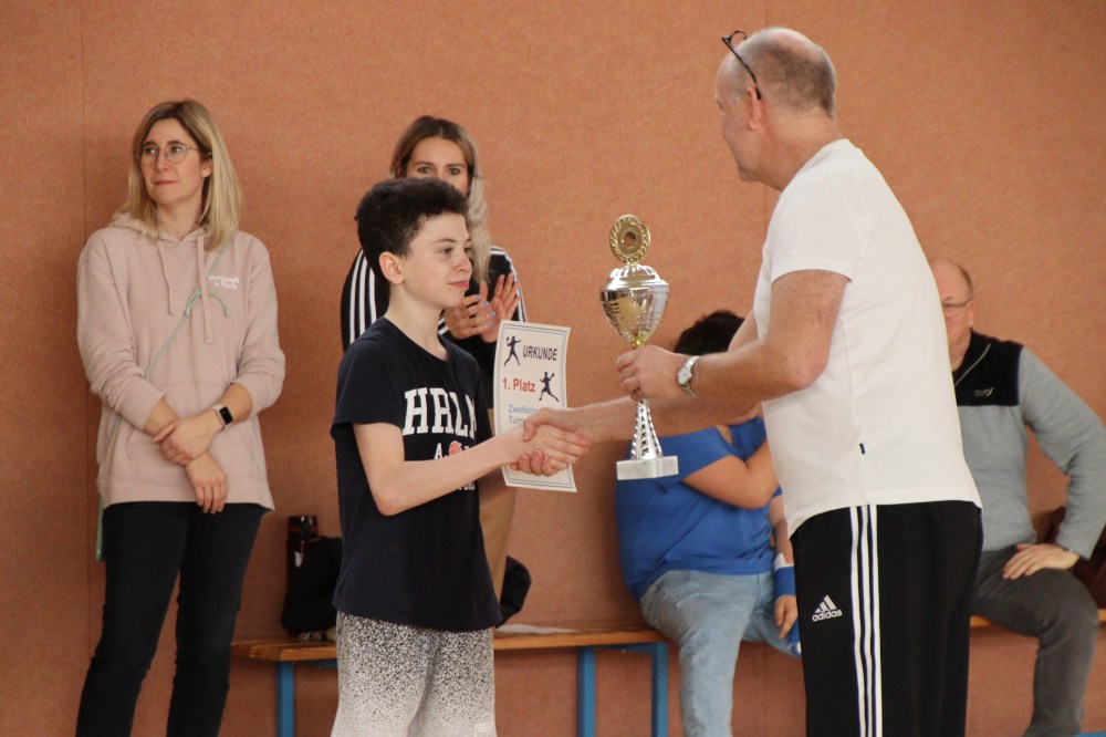 Wir gratulieren allen beteiligten Schülern für ihre aktive Teilnahme am Wettkampf. Ein toller Vormittag mit viel Lautstärke ging zu Ende. Jede Klasse erhielt eine Urkunde. Den Wanderpokal erhielt die Klasse 5a, die ihn im kommenden Schuljahr zu verteidigen versuchen wird.
