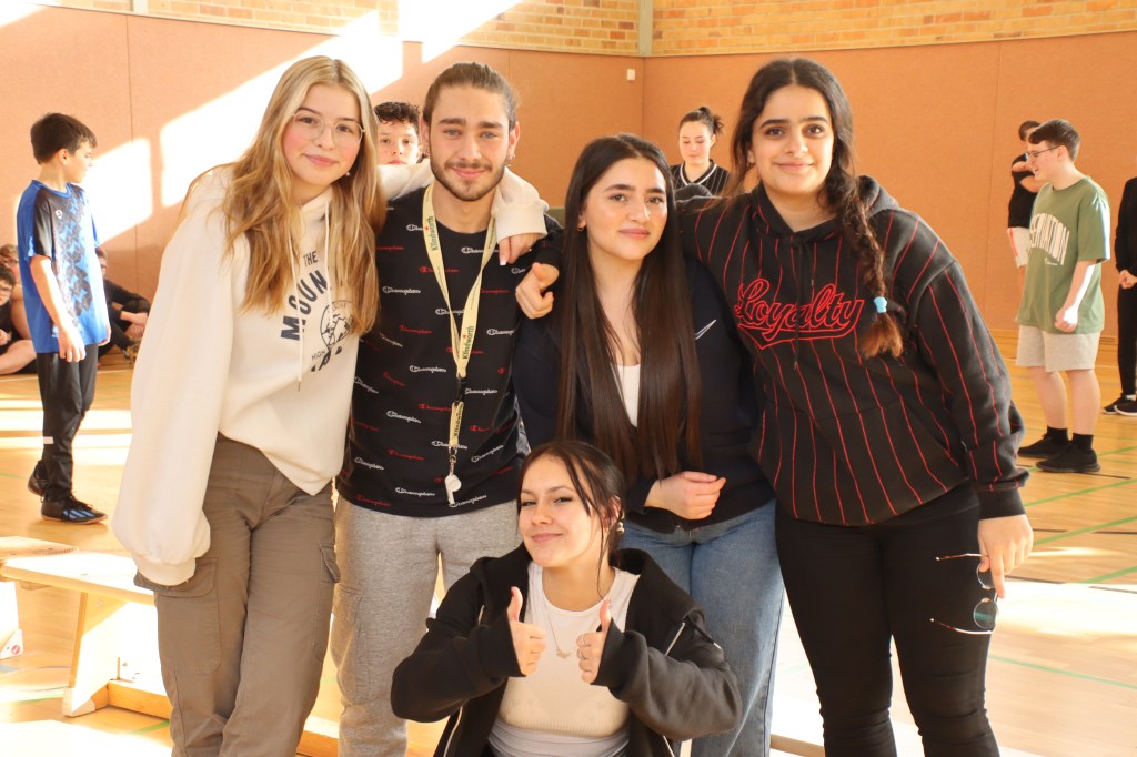 Ein Dank an die Oberstufenschüler der Klasse 10b, die als Schiedsrichter Frau Pribbernow, Herrn Linda und Herrn Marquardt unterstützten. Schön zu sehen, dass die Mitschüler ihre Klassen unterstützen, genauso wie viele Klassenlehrer, die in der Turnhalle die „beeindruckende“ Atmosphäre genossen!