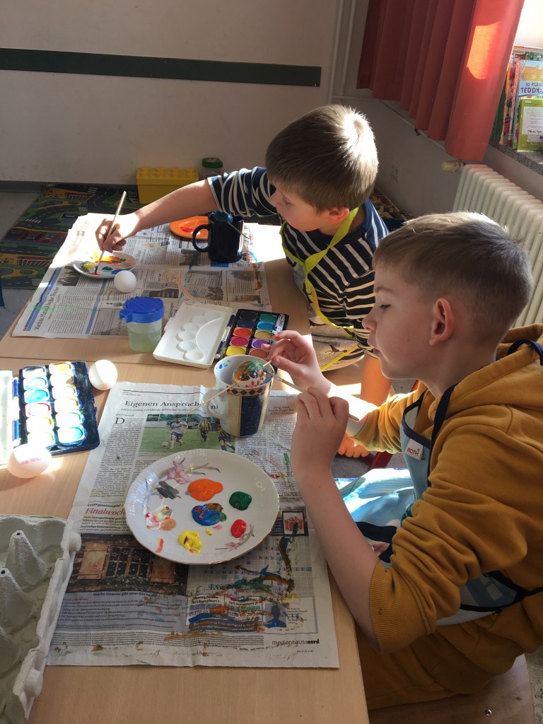 In vielen Klassen wurde am letzten Tag vor den Ferien noch einmal gebastelt und gewerkelt, Eier dekoriert, Geschichten vorgelesen und gebacken. Hier zeigen wir Ihnen und euch ein paar Eindrücke aus den ersten und zweiten Klassen.