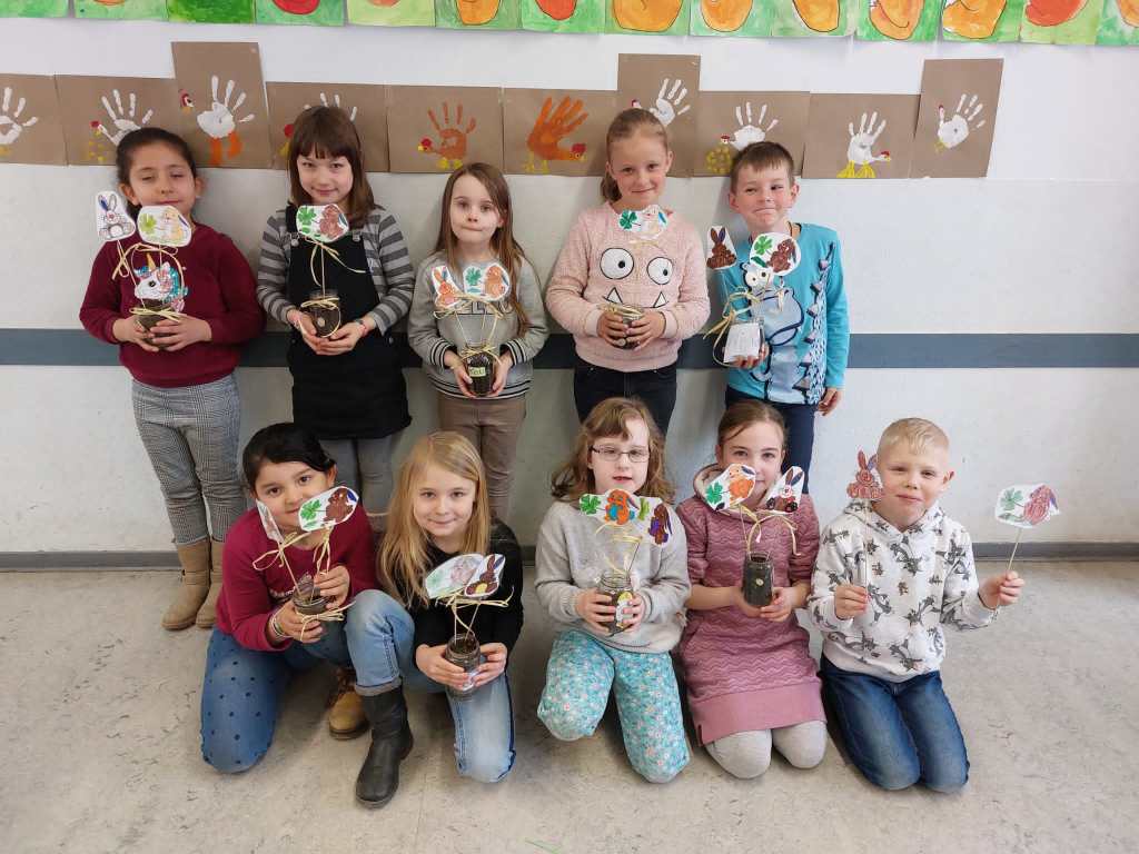 Die Kinder der Grundschule haben sich in dieser Woche auf das nahende Osterfest eingestimmt. So manch ein schöner Osterstrauß wurde geschmückt, die Fensterdekoration auf Frühling eingestimmt und ein Ostergedicht gelernt.