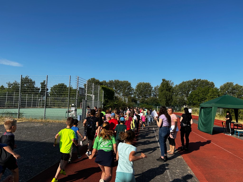Nach der zweiten Stunde kamen die Klassenstufen drei und vier auf den Sportplatz. Auch hier wurde hart gekämpft um die besten Leistungen. Und das bei recht heißen Temperaturen.