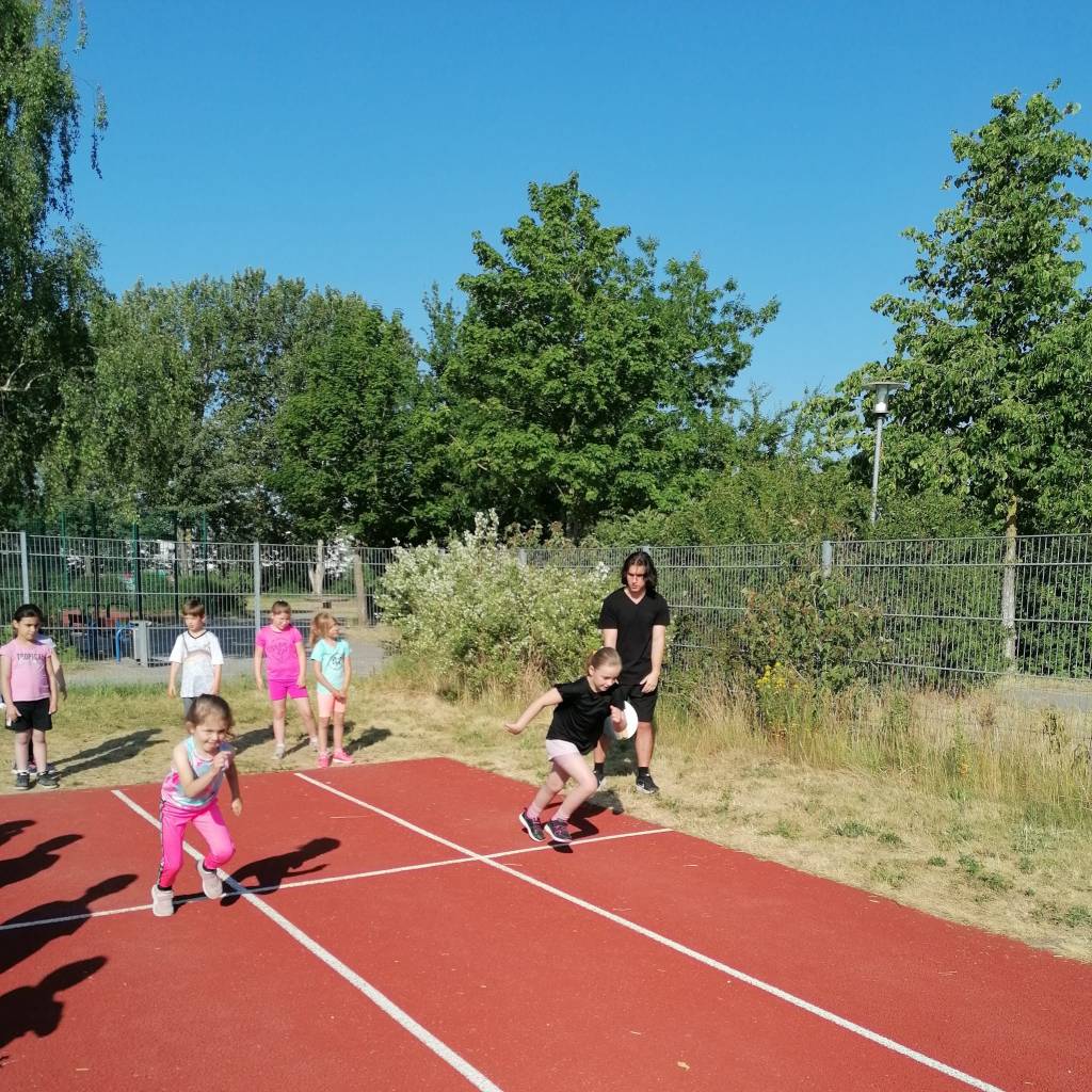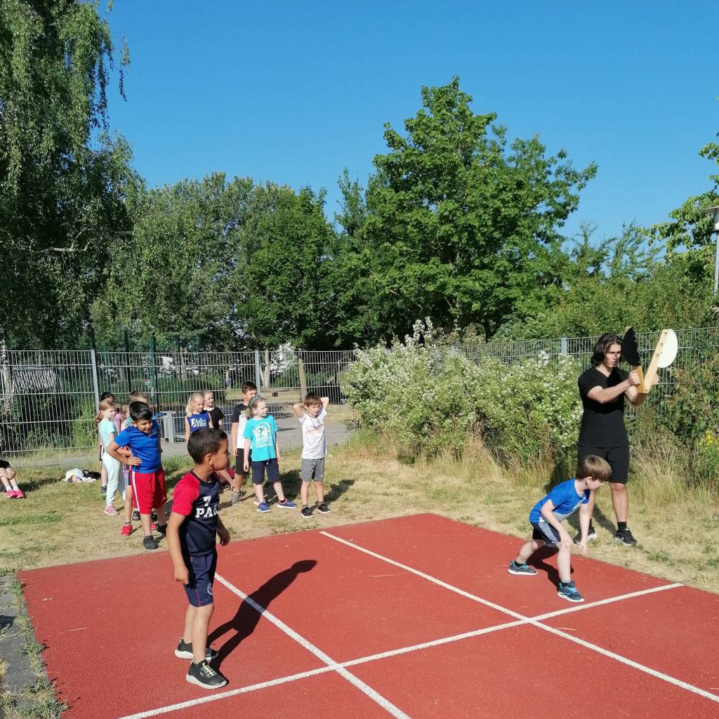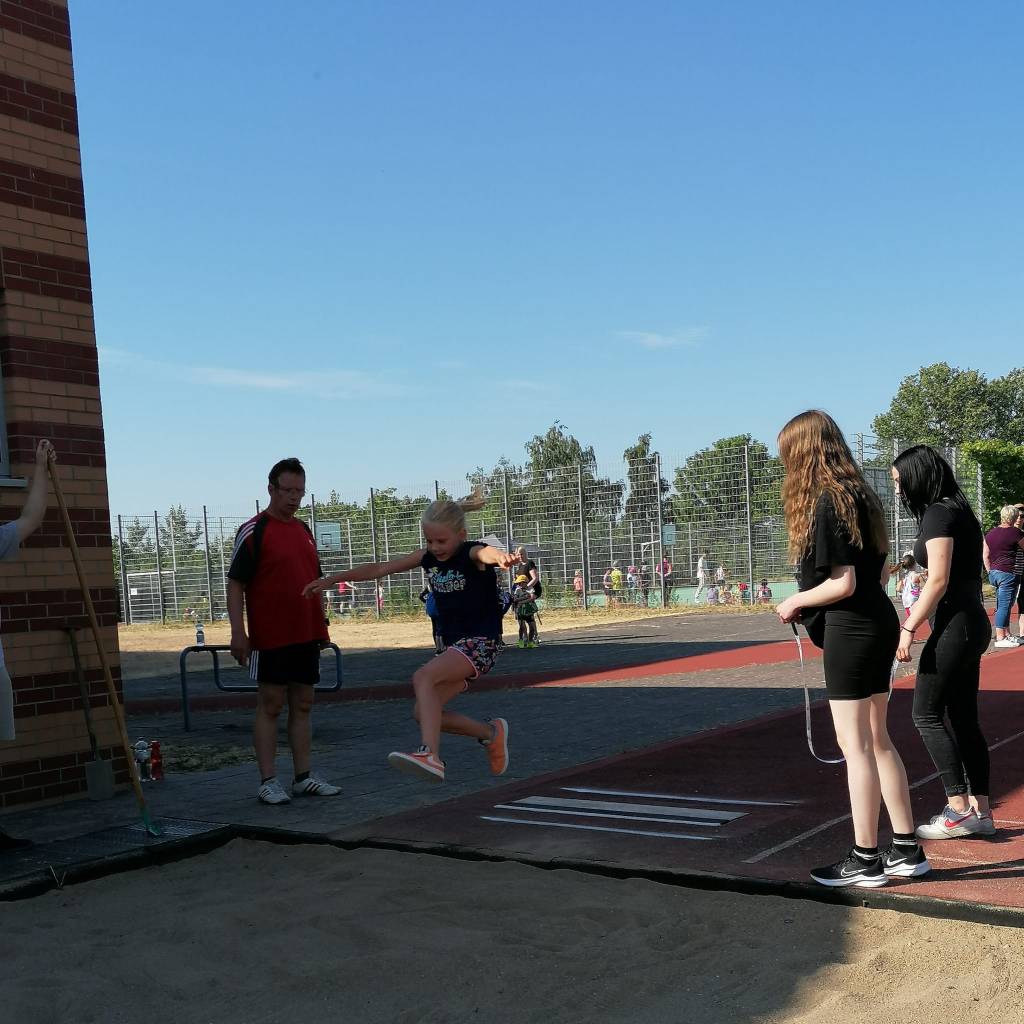 Bei allerbestem Wetter konnten die Schülerinnen und Schüler der Grundschule „Am Inselsee“ am Mittwoch, den 14. Juni ihr sportliches Talent unter Beweis stellen. Pünktlich um 8 Uhr ging es für die ersten und zweiten Klassen auf dem Außengelände des Sportplatzes los. Nach einer Begrüßung und dem Warmlaufen standen die Disziplinen Schlagballweitwurf, Weitsprung und 50m-Lauf auf dem Plan. Alle Kinder zeigten Motivation und gaben ihr Bestes und so mancher konnte seine Vorleistungen verbessern.