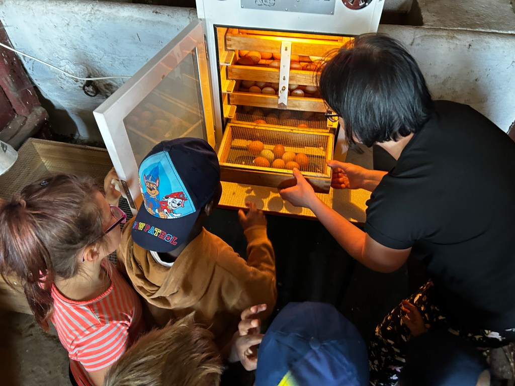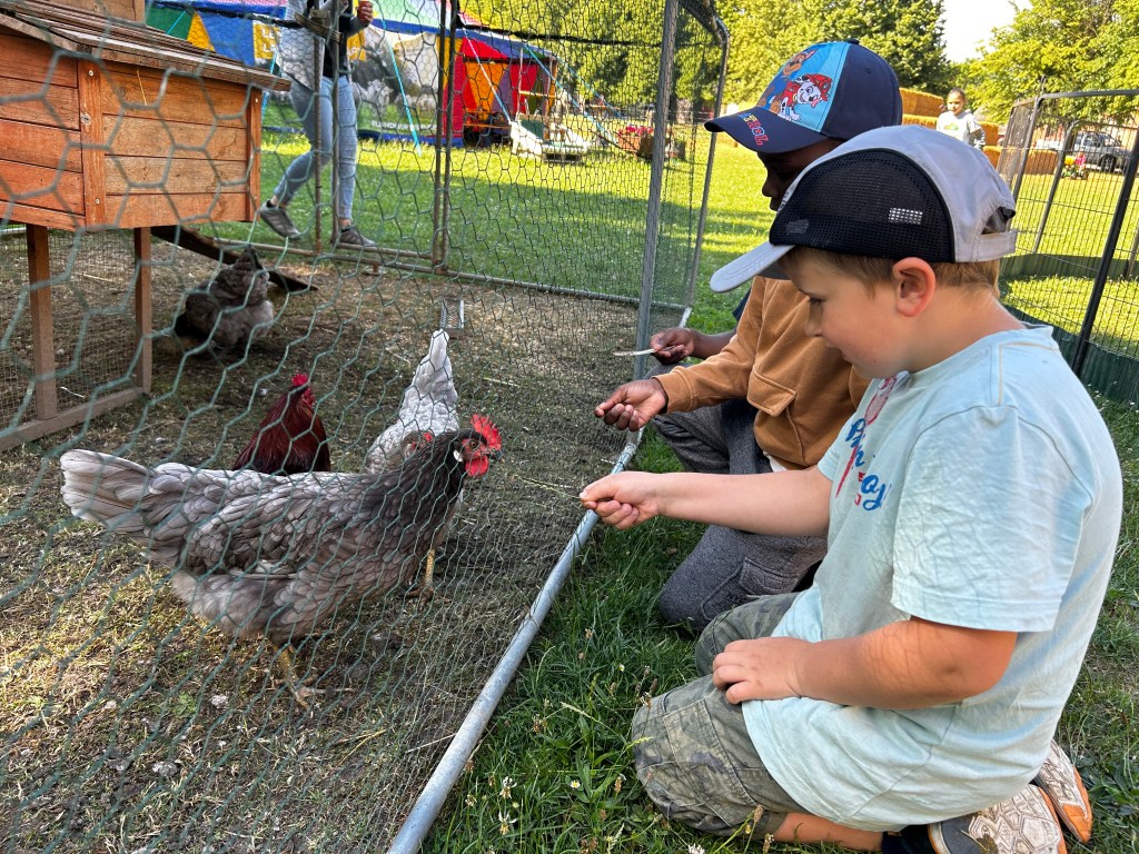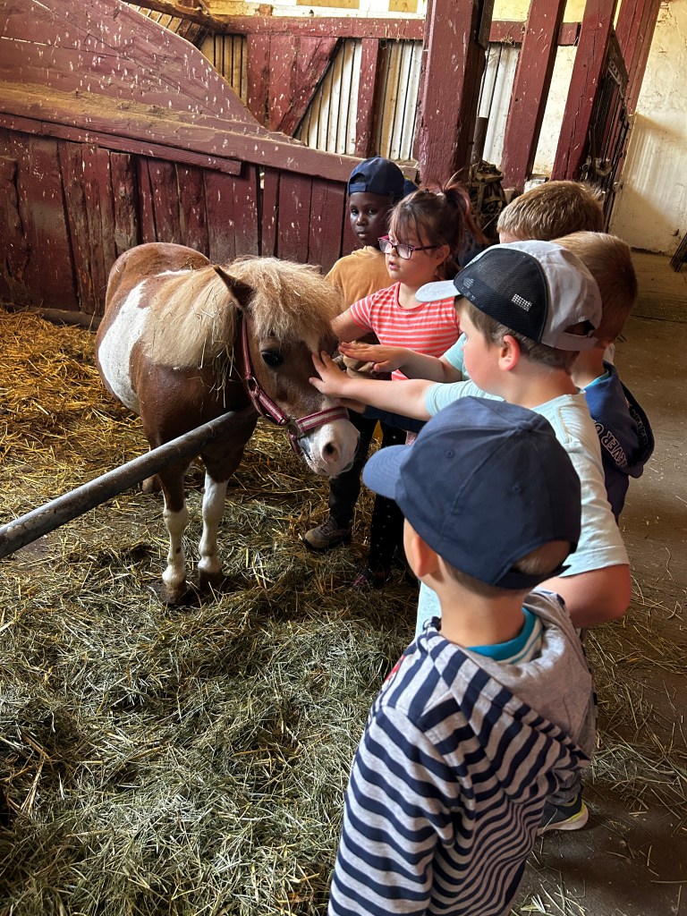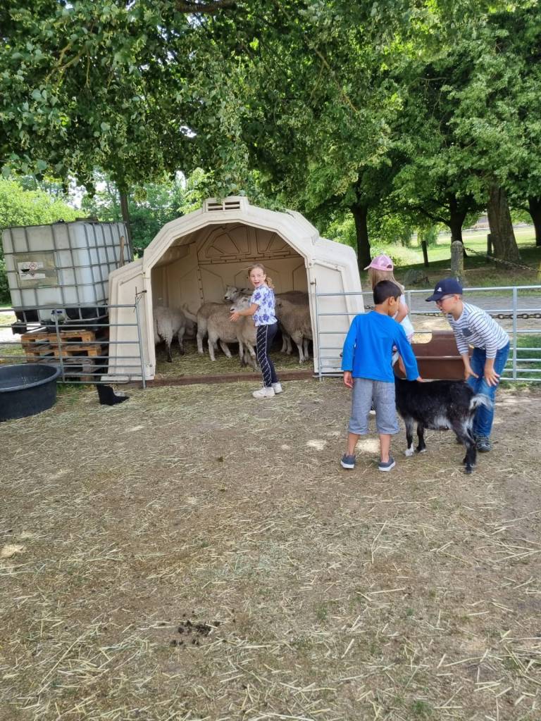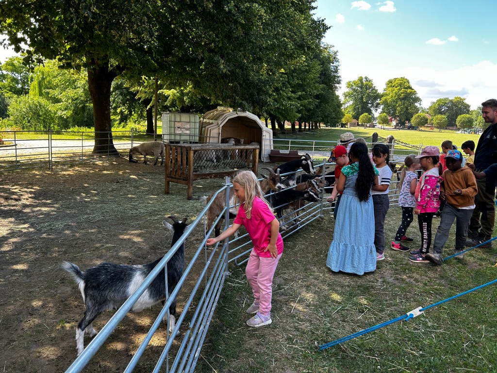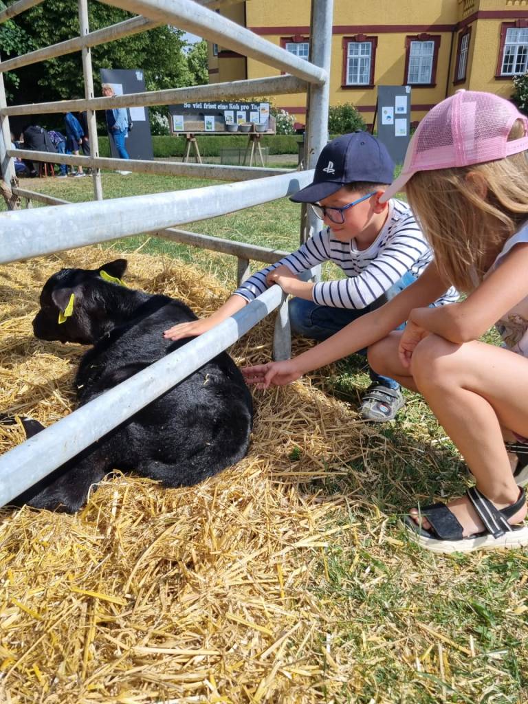 Wir haben in einen Brutkasten schauen dürfen und gelernt, wie Küken schlüpfen. Die Kinder haben verschiedene Tiere wie Ziegen, Schafe, Enten, Hühner, Kühe und Hasen hautnah erlebt. Wir konnten an einem Melkstand selbst das Melken ausprobieren und haben viele weitere interessante Dinge über Kühe gelernt, z. B. das eine Kuh eine Badewanne voll Wasser am Tag trinkt. Es gab auch genügend Zeit, um nach Herzenslust auf einer großen Strohwiese zu spielen und zu toben.