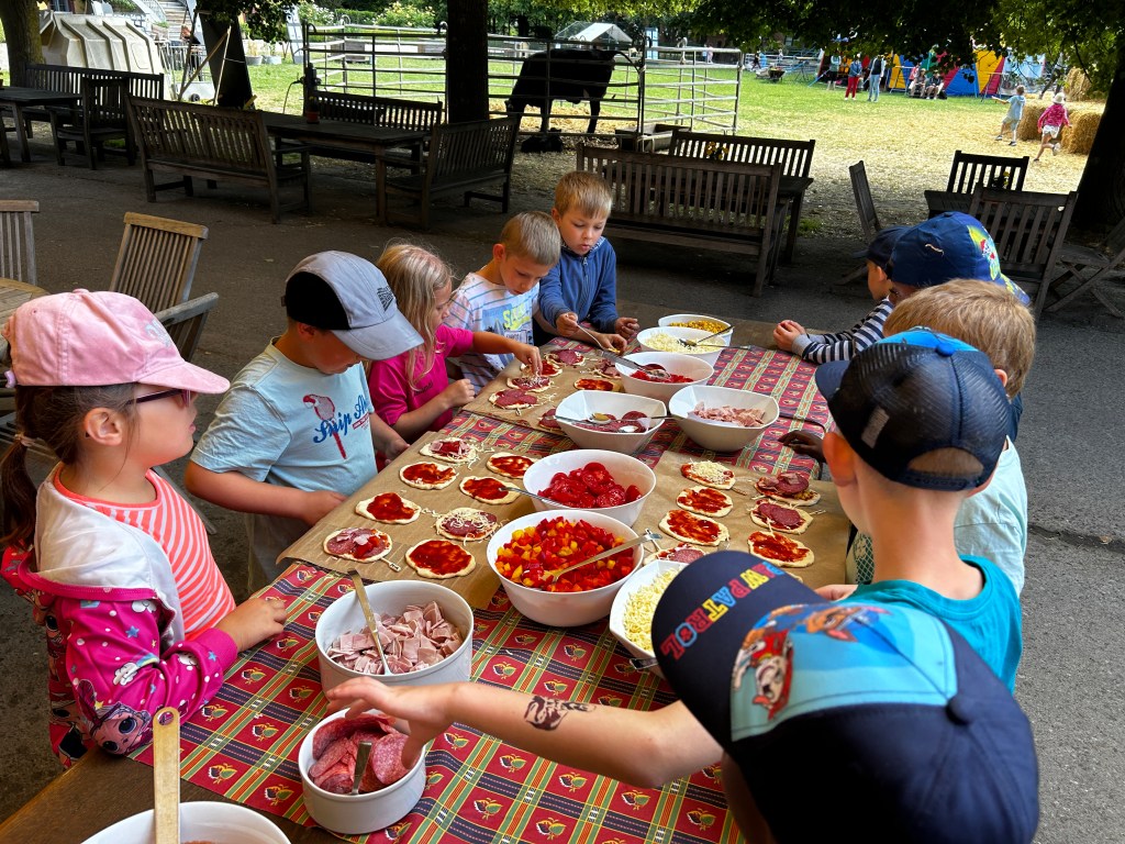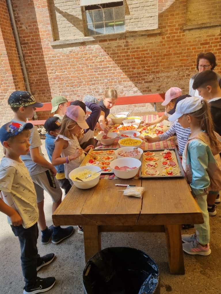 Gemeinsam mit der Veranstalterin hat jedes Kind seine eigene Pizza belegt und im Anschluss haben wir gemeinsam an der frischen Luft Mittag gegessen. Wir hatten auch die Möglichkeit, die verarbeitete Milch der Kühe des Hofes zu trinken. Alles in allem waren es zwei gelungene Tage, in denen wir viel gelernt haben und die Kinder glücklich und zum Teil erschöpft auf der Heimfahrt im Bus eingeschlafen sind.