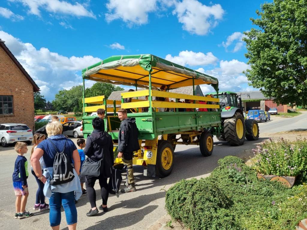 Am 27. und 28. Juni unternahmen die Kinder der Klassenstufe eins und zwei einen Ausflug zum Schulbauernhof in Hohen Luckow. Bei schönem Wetter gab es eine Rundfahrt im Anhänger eines Traktors, über das Gelände des Agrar- und Milchviehbetriebes. Wir fuhren in die großen Stallungen der Milchkühe, konnten dort alles anschauen, sowie die Kühe anfassen und füttern. Wir konnten viele Fragen stellen und haben einen Einblick in die Milchviehhaltung erhalten.