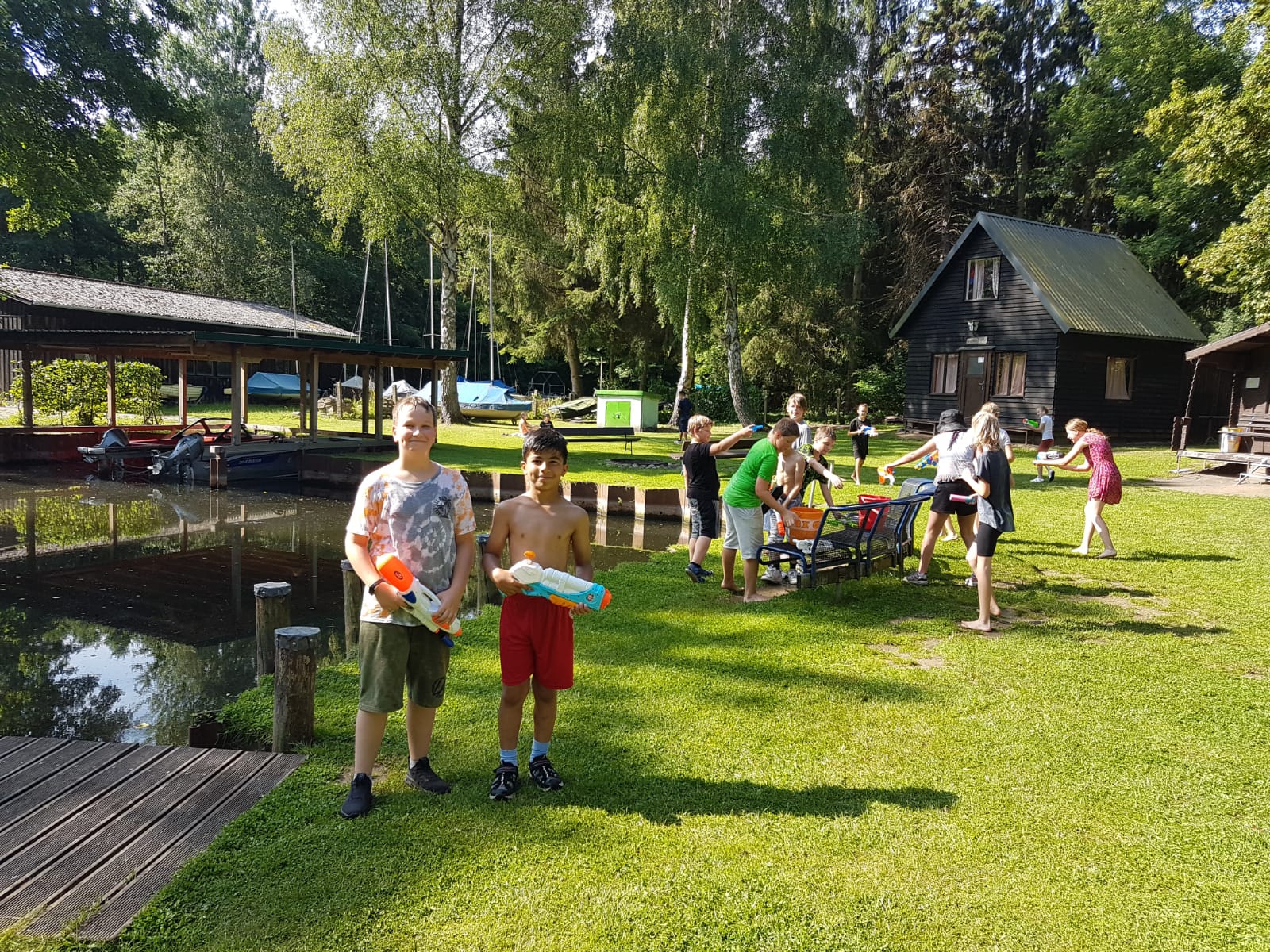 Bei sportlichen Staffeln, die auch von den Klassenlehrerinnen absolviert wurden, gab es kleine Preise zu gewinnen. Freundschaftsarmbänder wurden gebastelt. Schülerinnen der 4b hatten eine Tanzchoreografie einstudiert und erhielten dafür viel Beifall. Bei bestem Sommerwetter hatten einige Schüler viel Spaß dabei, sich mit ihren Wasserpistolen abzukühlen.