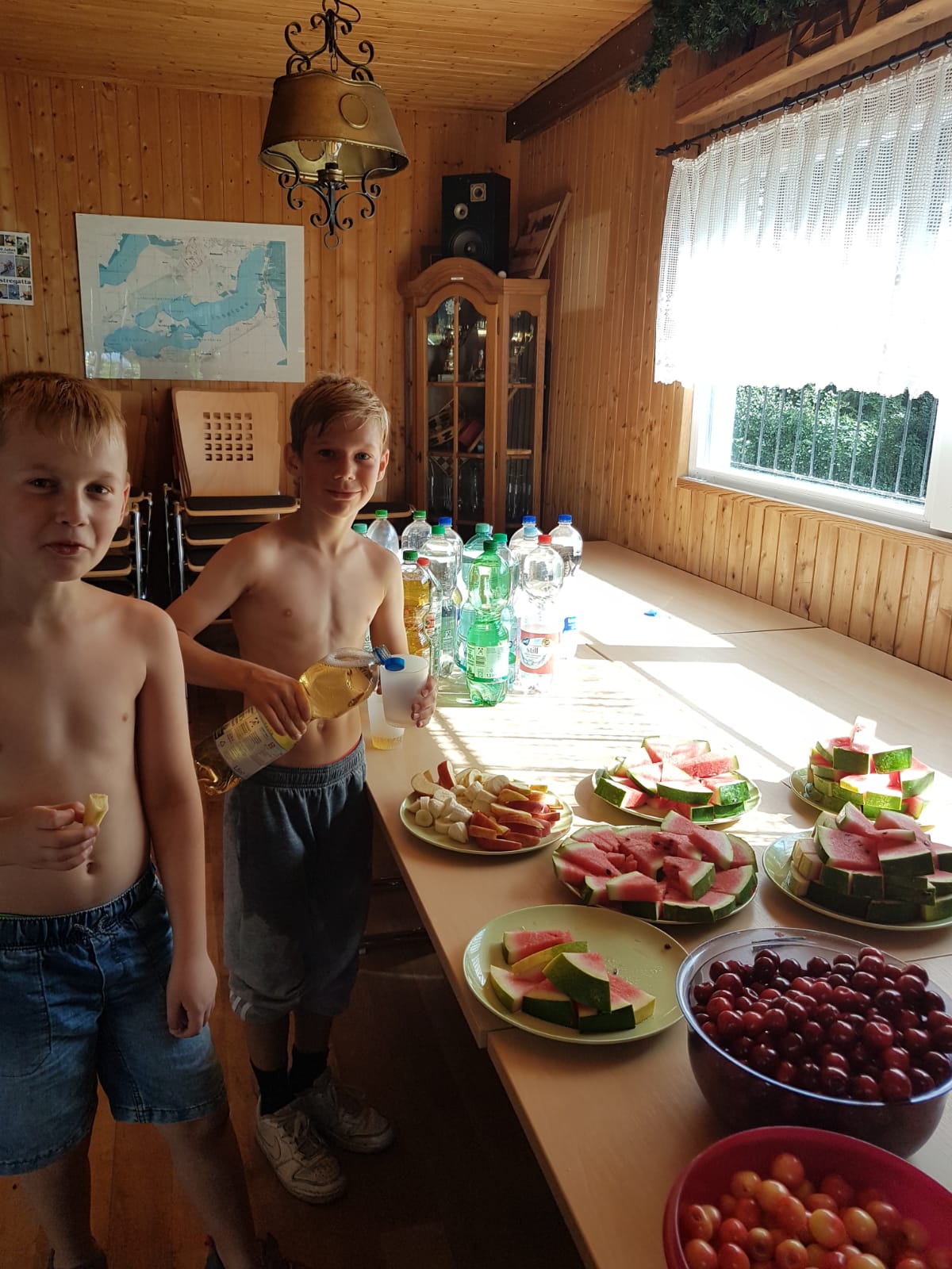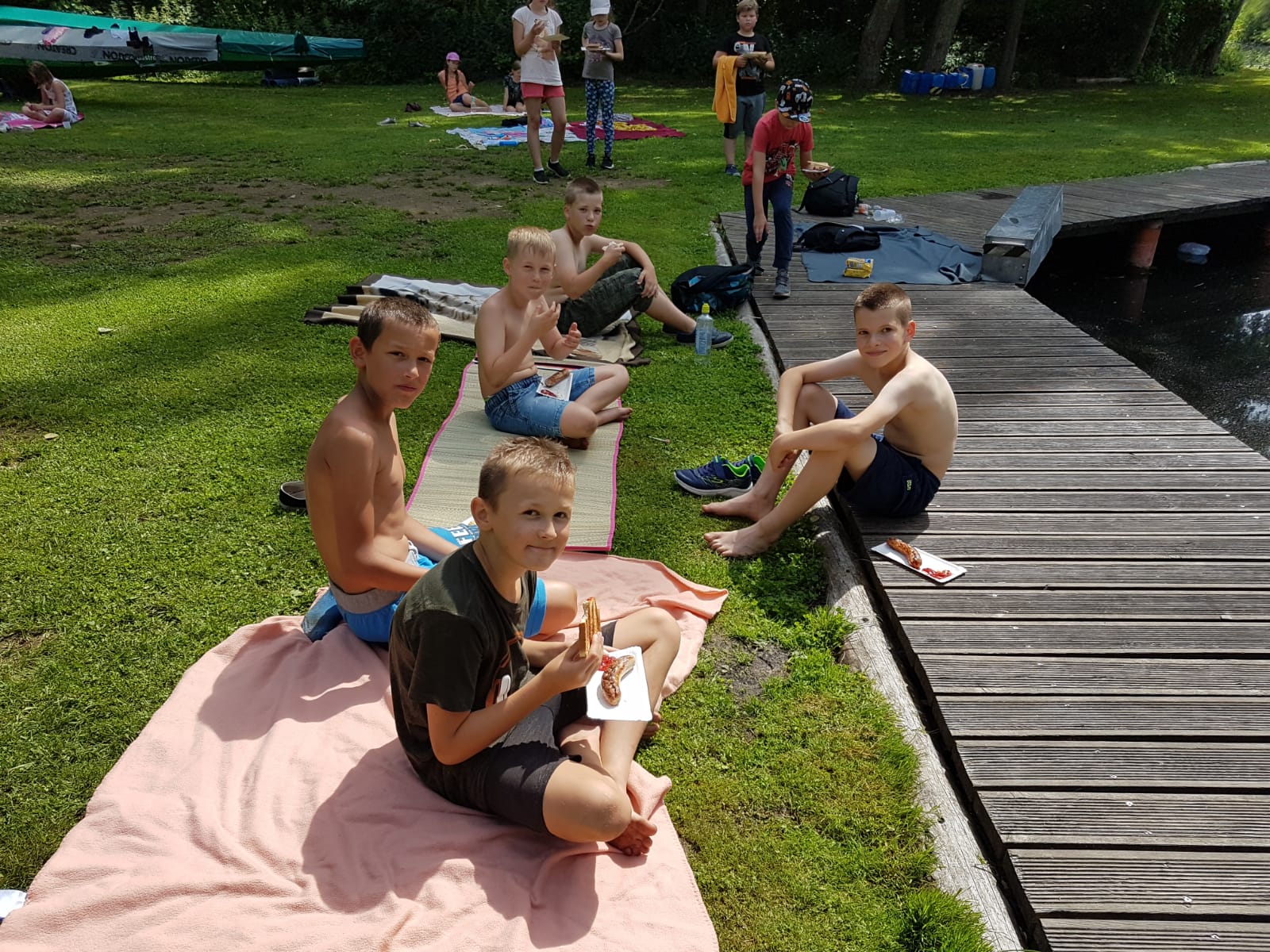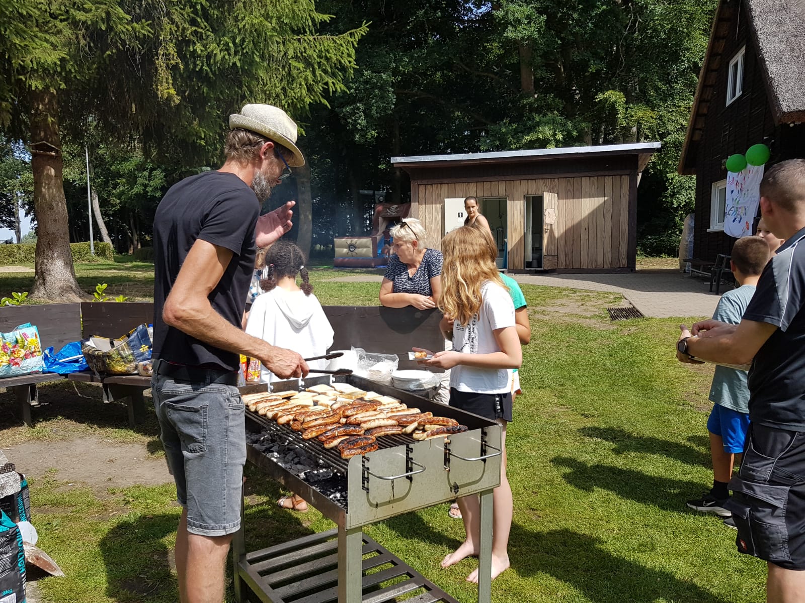 Die fleißigen Helfer, Eltern aus den Klassen, versorgten die Kinder ständig mit frischem Obst, Getränken und natürlich auch Süßem. Der große Hunger wurde dann am Grill gestillt. Renner war der Nachtisch: Marshmallows auf Butterkeks mit Karamellsoße. Alle hatten viel Spaß und am Ende unserer Feier bedankte sich Hannes im Namen aller Schüler für den schönen Tag bei den Eltern und Lehrerinnen. Wir wünschen allen Schülerinnen und Schülern einen guten Start in die 5. Klasse.