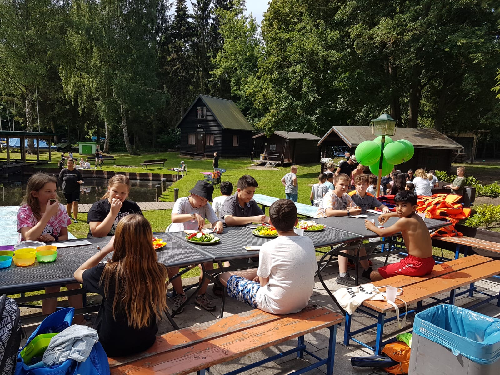 Am 11.07.2023 feierten die Klassen 4a,4b und 4c gemeinsam den Abschluss ihrer Grundschulzeit. Das Gelände des Kanuvereins war für diese Feier eine großartige Location. Bei vielfältigen Aktivitäten verging die Zeit wie im Flug. Die Hüpfburg war ständig umlagert. Es wurden Fußball und Volleyball gespielt.