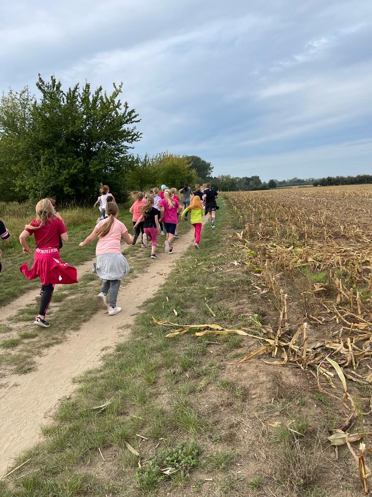 Am 28.09. fand der Herbstcrosslauf der Grundschule statt. Wir hatten dieses Jahr sehr gutes Laufwetter. Die Klassen starteten gestaffelt. Zuerst liefen die jüngsten Schüler und Schülerinnen getrennt nach Jungen und Mädchen. Zum Schluss liefen die ältesten Kinder. Die jeweils 6 schnellsten LäuferInnen wurden gleich am nächsten Tag dank unserer fleißigen Urkundenschreiber ausgezeichnet. Alle Kinder haben Ihr Bestes gegeben und kamen auch in diesem Jahr wieder unbeschadet und glücklich ins Ziel. Die stolzen Gewinner erhielten eine Medaille und eine Urkunde zur Erinnerung.