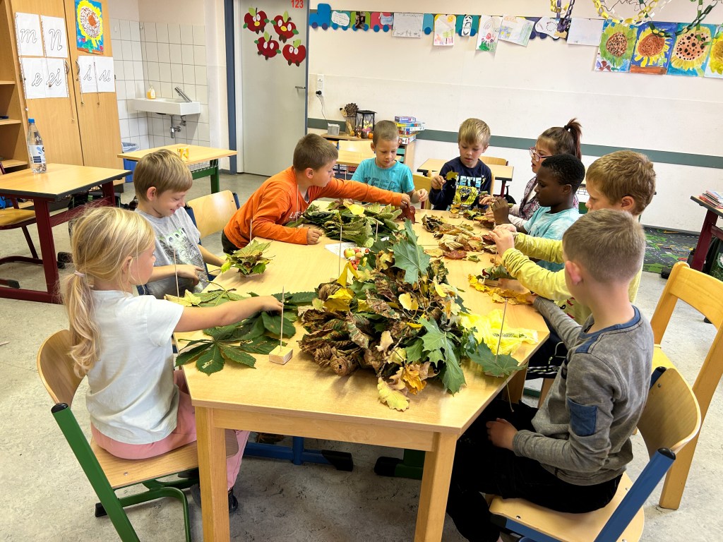 Die SchülerInnen der 4b und 4c stellten sich auf den Herbst mit einem Herbarium und einem sehr schönen Kunstprojekt ein.