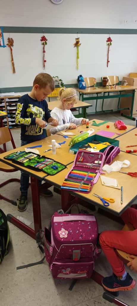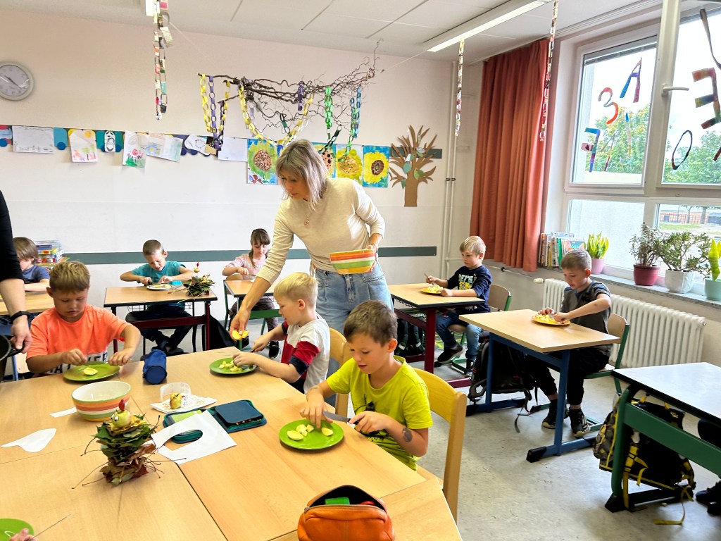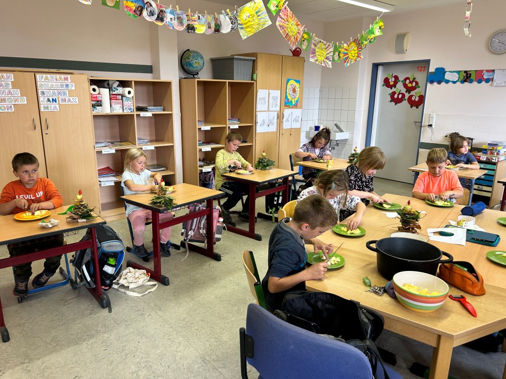 Mal etwas Anderes lernen, nicht nur fächerweise Deutsch, Mathematik und Sport nach Stundenplan – das haben wir heute an unserem Projekttag zum Thema Herbst gemacht. So mancher Schüler konnte am heutigen Tage mit seiner Lehrerin oder seinem Lehrer Äpfel schneiden, Kartoffeln schälen oder auch einen Drachen basteln und spielen. Manche Klassen wurden auch fleißig durch helfende Eltern unterstützt. Jede Klasse hat eigene Projekte rund um das Thema Herbst gefunden. Hier zeigen wir ein paar Eindrücke aus den einzelnen Gruppen.