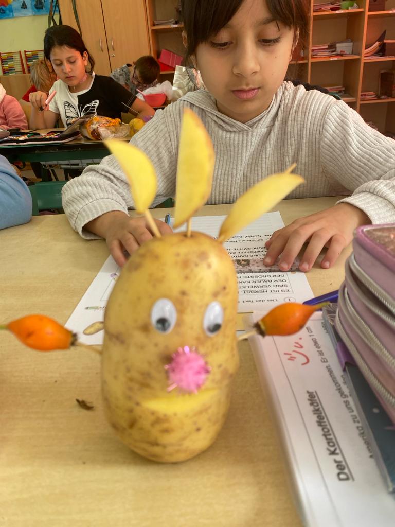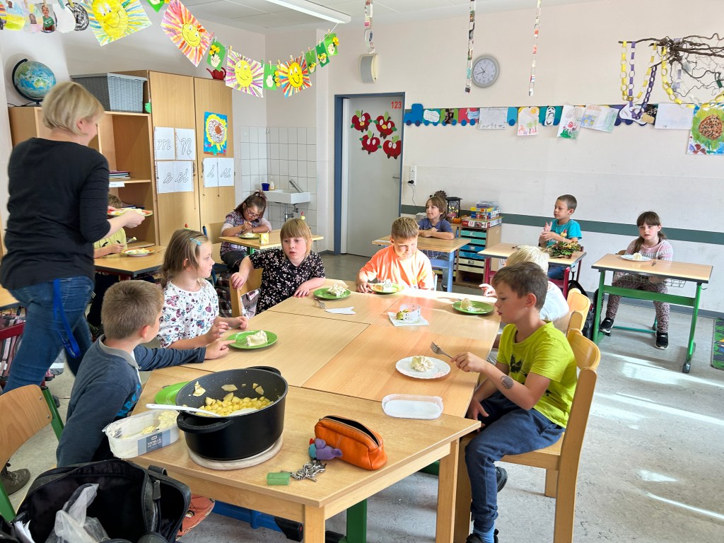 Tolle Knolle – war das Zauberwort der Klasse 3a. Den ganzen Tag beschäftigten sich die Schüler und Schülerinnen mit der Kartoffel, das Lernen kam trotzdem nicht zu kurz. Zum Schluss gab es einen großen Topf voll selbst zubereiteter Kartoffelsuppe.