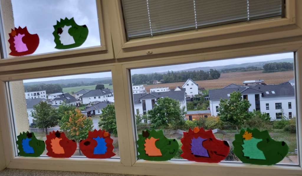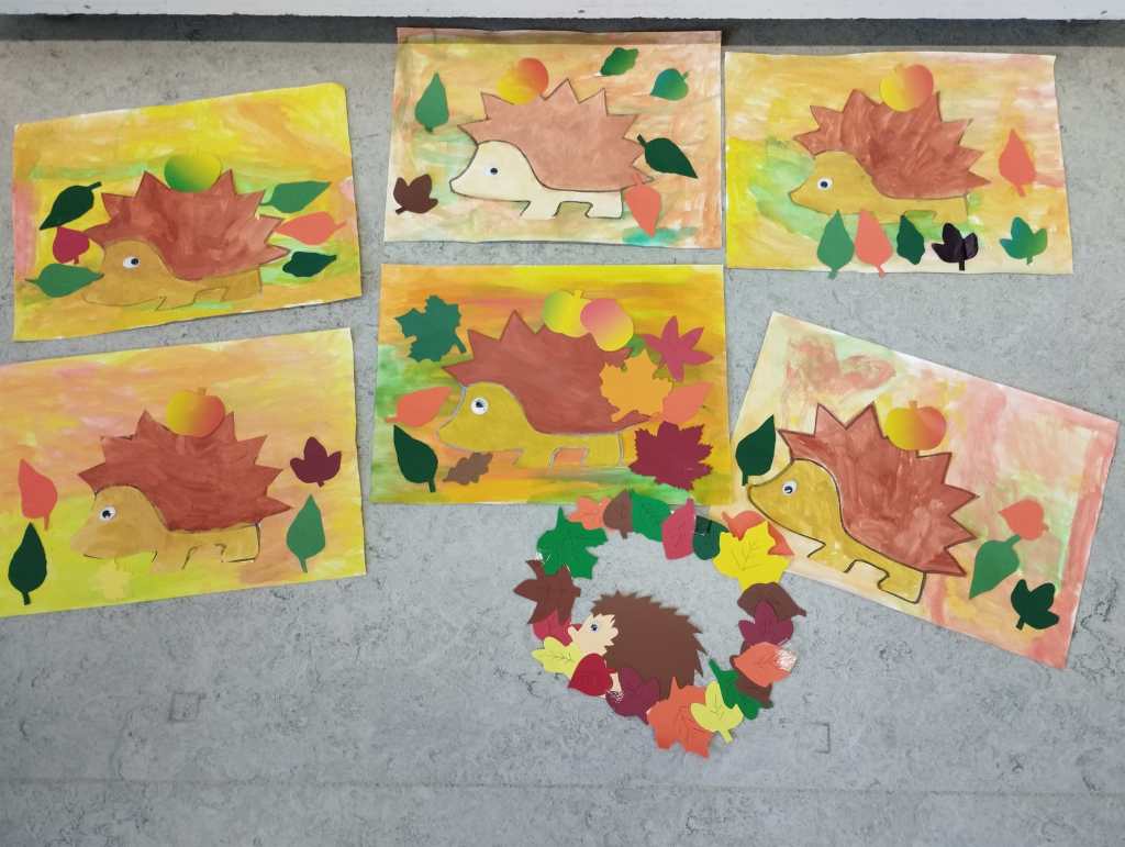 Auch in der DAZ Klasse haben die Kinder schöne Igel gebastelt.