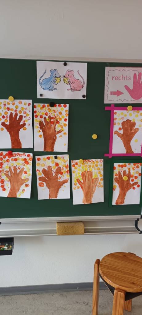 Die Klasse DFK0/a hat fleißig gebastelt und schöne bunte Herbstbäume getupft.
