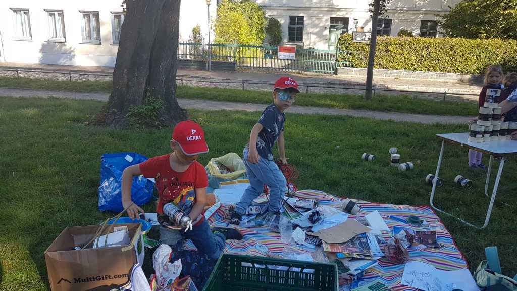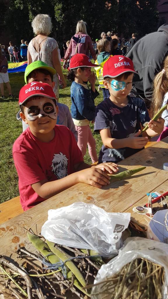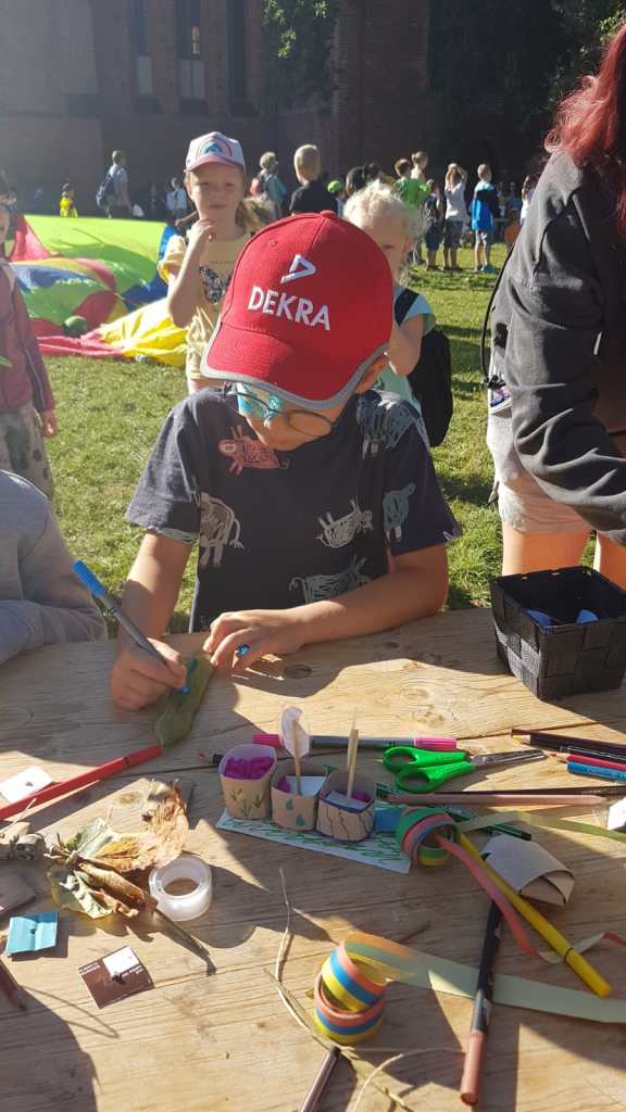 Das Angebot war sehr vielfältig: Müll sortieren, Basteln mit Naturmaterialien, Malen, Herstellen von Kräuterprodukten, Singen, Bewegungsspiele und Kinderschminken.