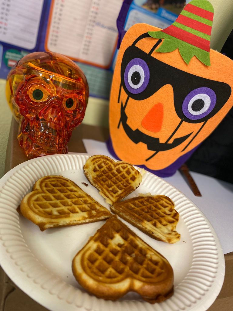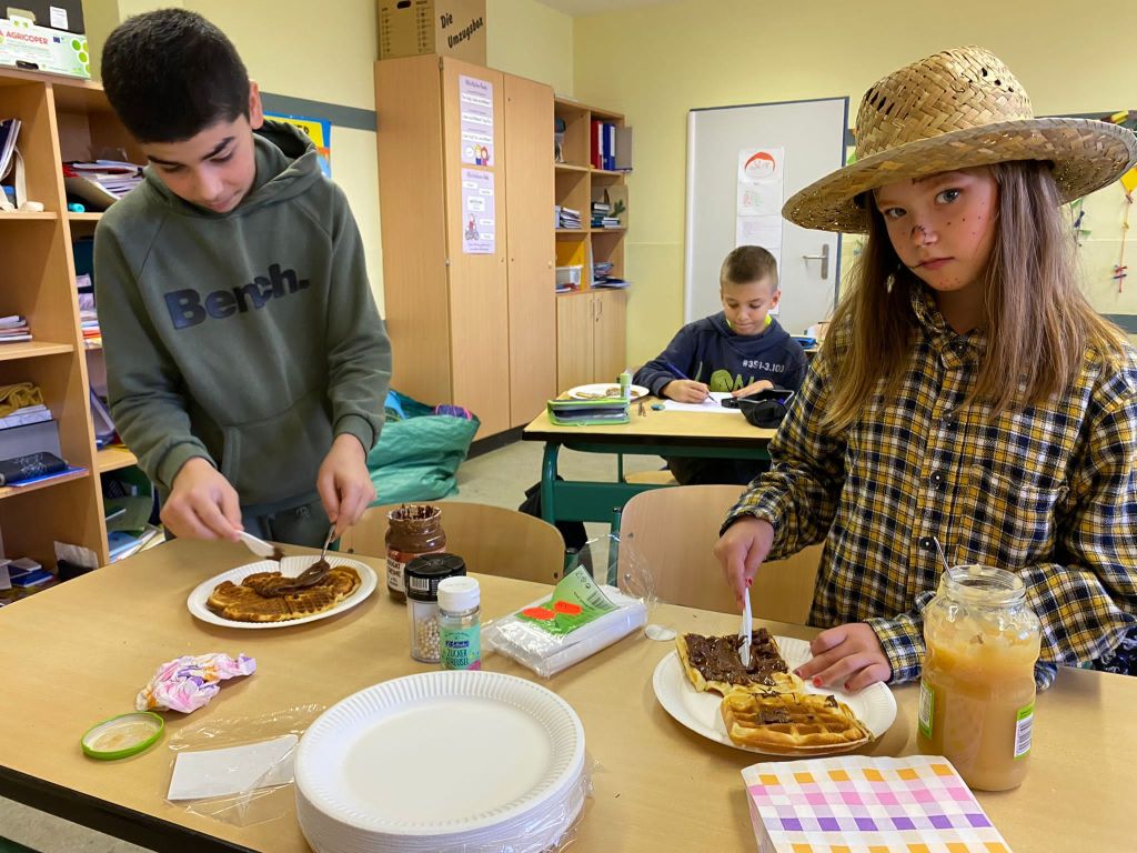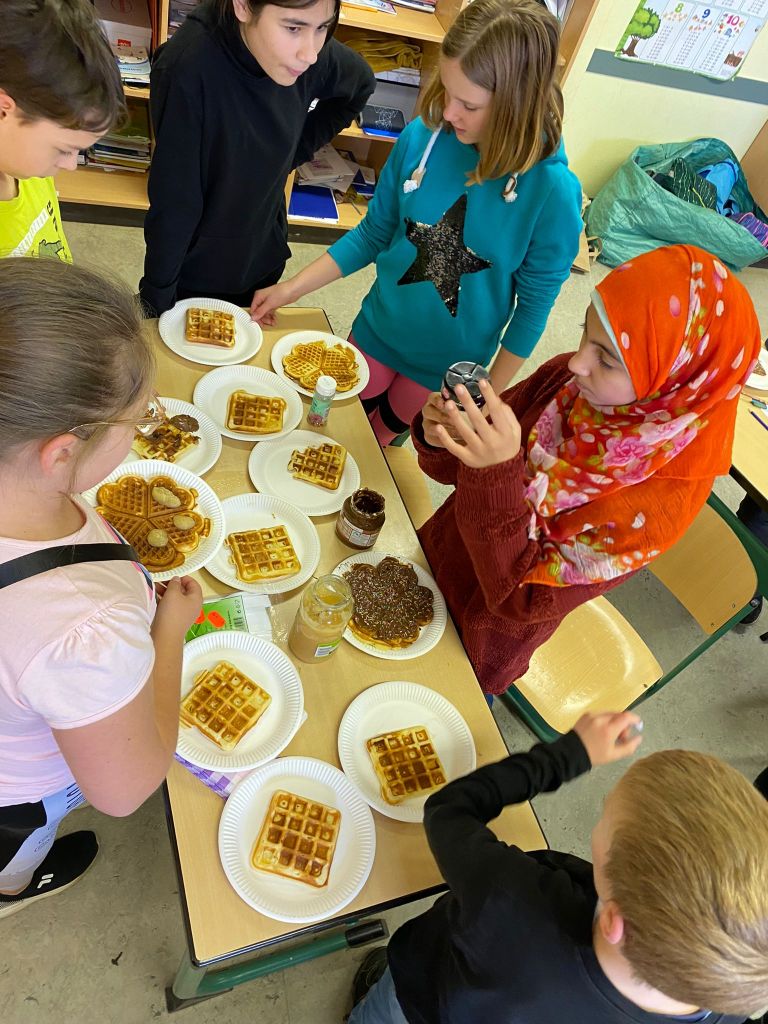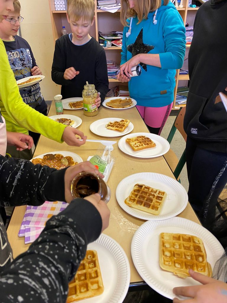 Die vierten Klassen haben am Freitag, den 27.10.23 eine Halloween Challenge bestritten… nach 20 fertig gestellten Gruselbildern gab es eine schaurig-schöne Überraschung. Zwischendurch wurden leckere Waffeln gebacken und verziert sowie verschiedene Stationen absolviert. In der letzten Stunde wurde noch eine Gruselgeschichte zu Ende geschrieben – nun sind alle bestens auf das kommende Halloween-Fest vorbereitet.