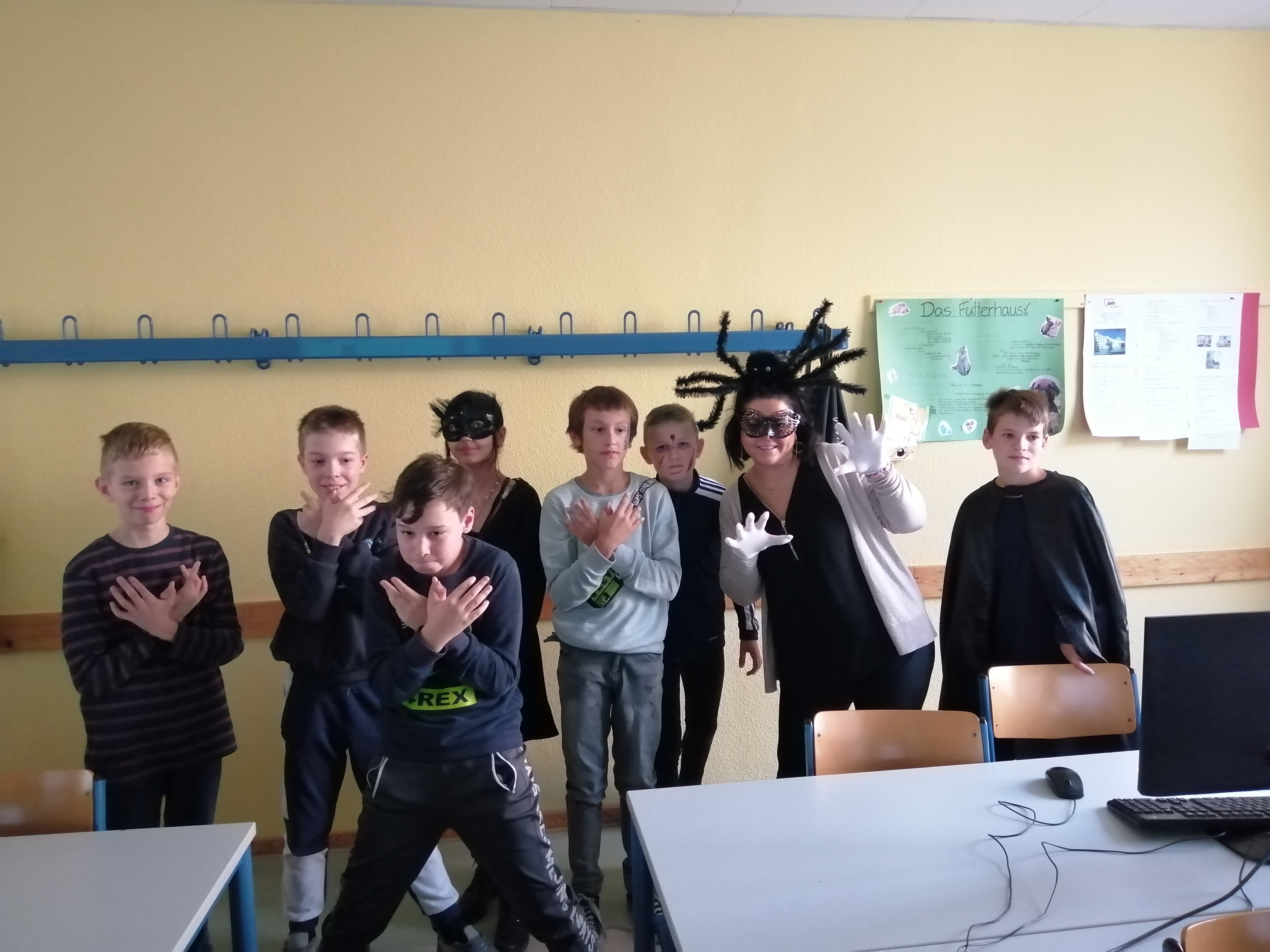 Frau Beyer arbeitete mit den Kindern im Computerraum. Hier erstellten die Schülerinnen und Schüler ein Halloweenquiz, in welchem jeder seine Englischkenntnisse beweisen konnte. Zum Abschluss durften alle Jungen und Mädchen der beiden Klassen ein Exemplar mit nach Hause nehmen.
