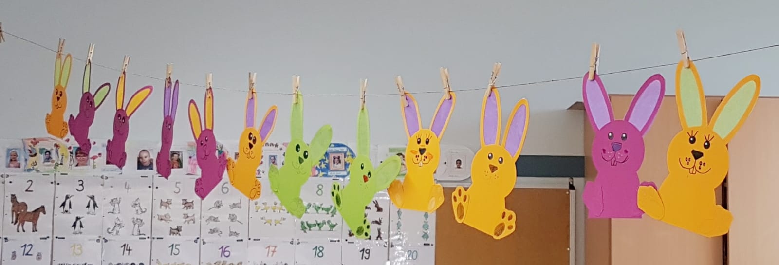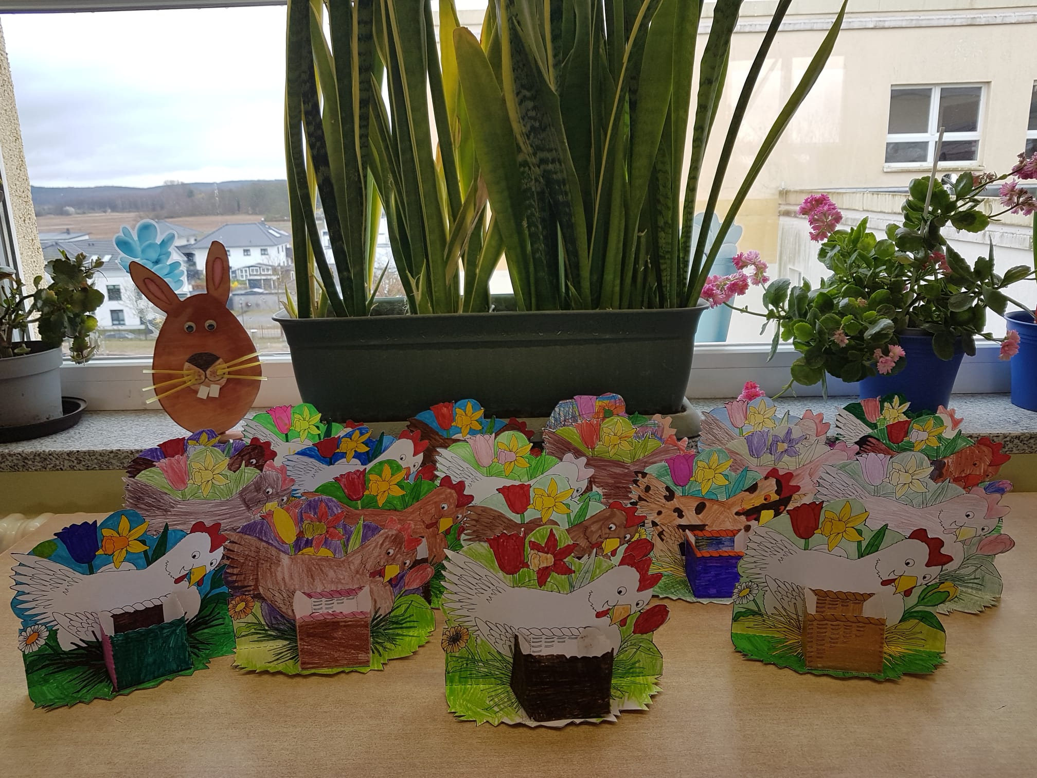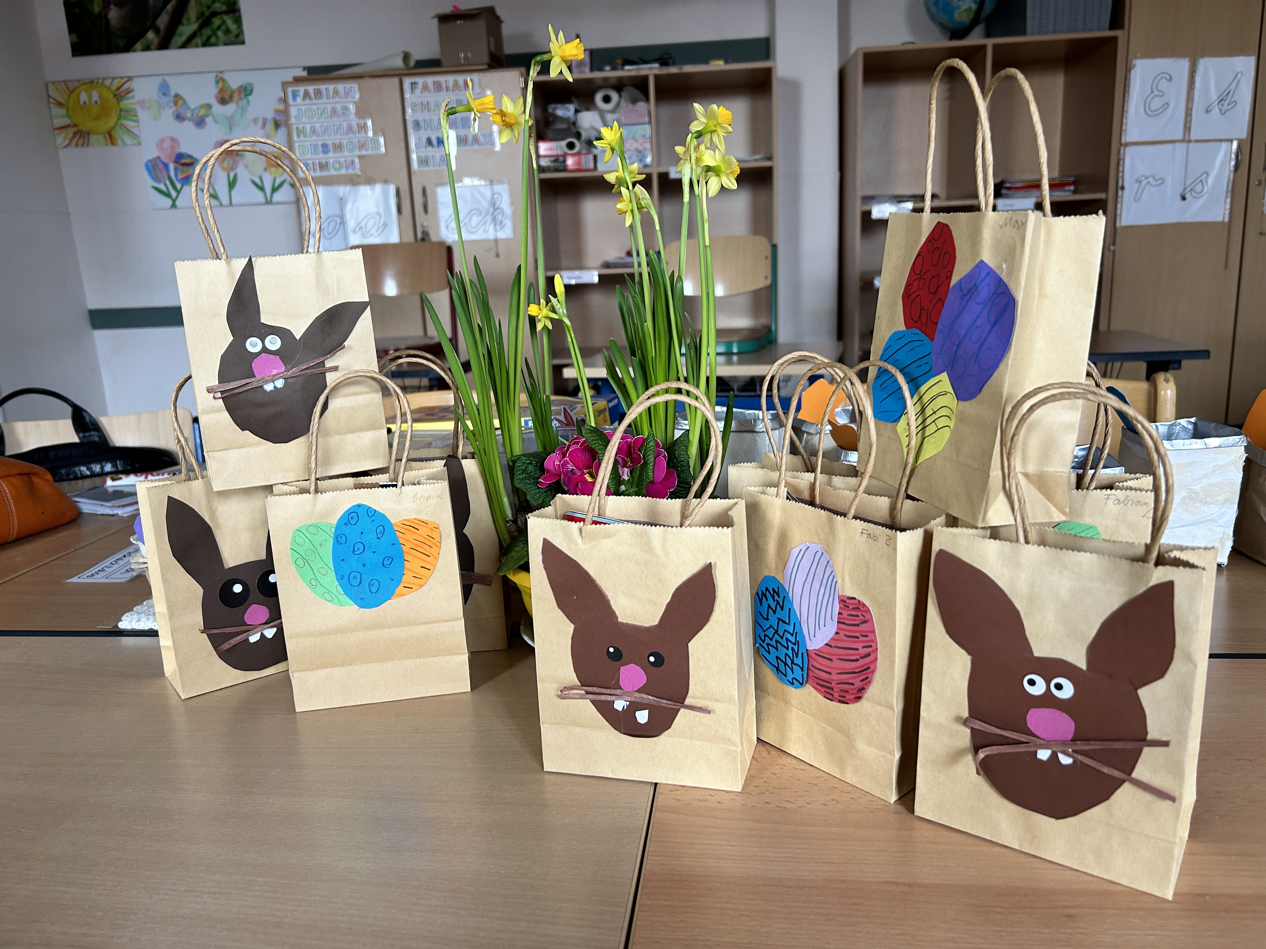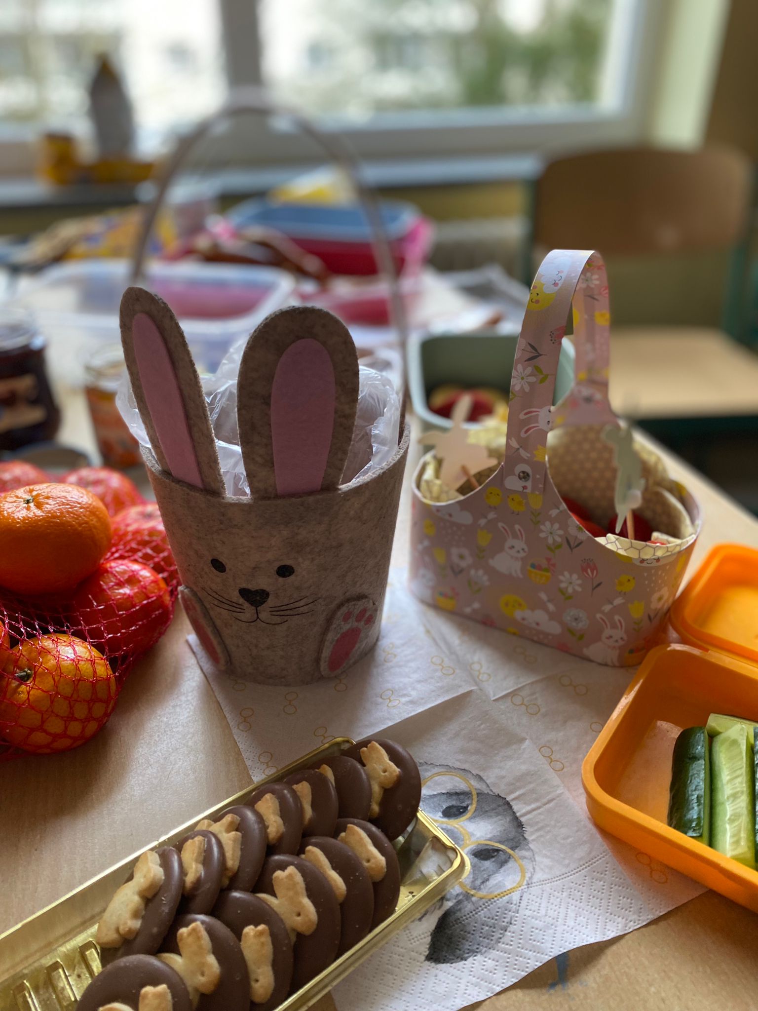 Der erste Frühlingstag zeigte sich noch nicht von der besten Seite. Leider nieselte es heute, am 21. März und der Osterhase konnte kaum Nester für die Kinder verstecken. Dennoch ließen sich die Schülerinnen und Schüler die Vorfreude auf das Osterfest nicht nehmen. In der Schule stimmten wir uns auf Ostern ein. In vielen Klassen fanden schöne Projekte mit einem gemeinsamen ausgedehnten Frühstück statt. Es wurden ansprechende Osterdekorationen hergestellt und nach Osterkörbchen gesucht. Ein paar Eindrücke stellen wir hier vor: