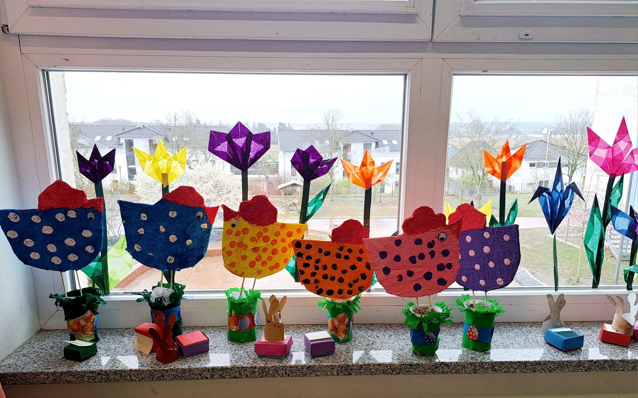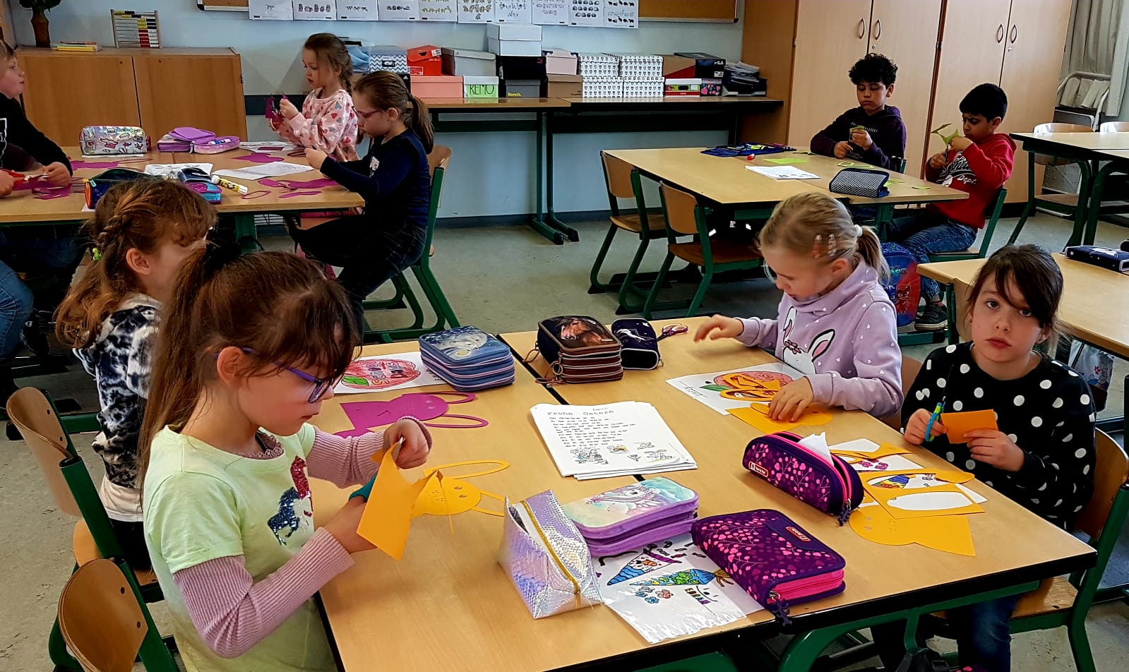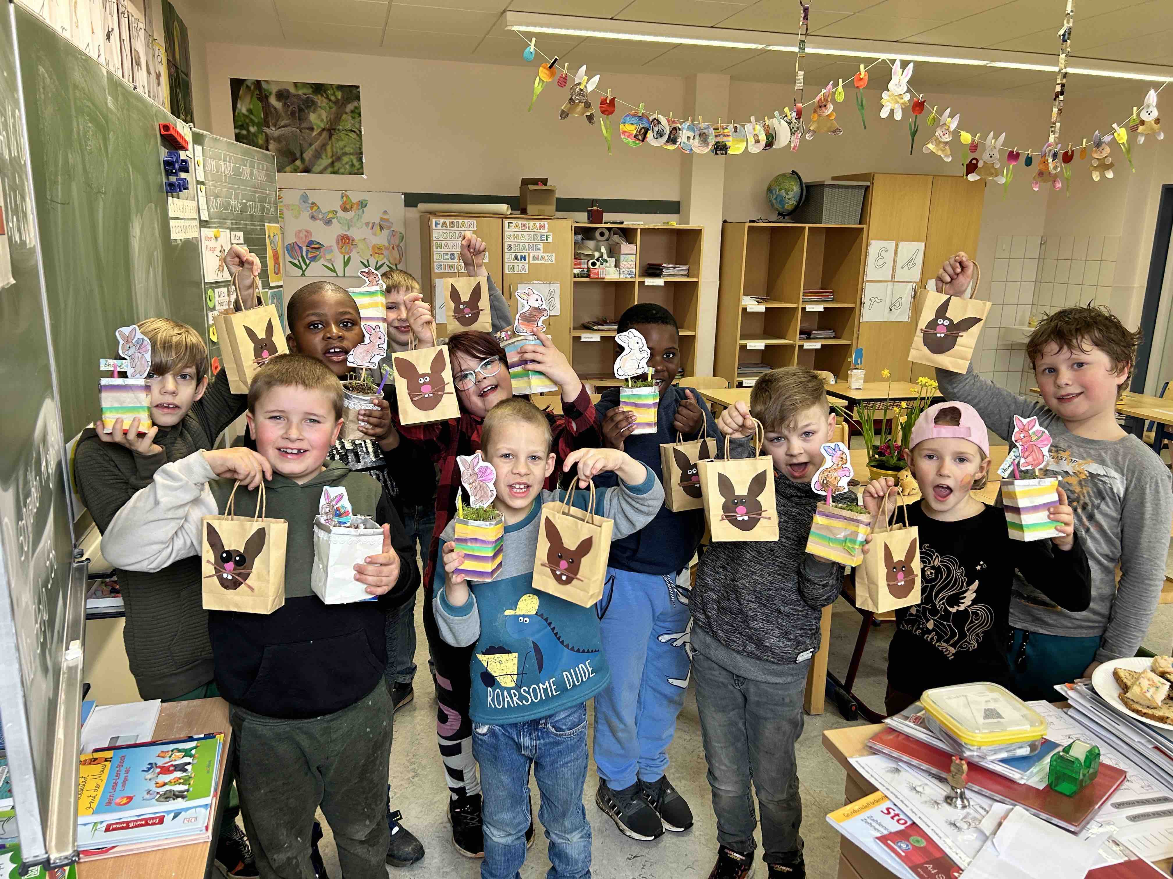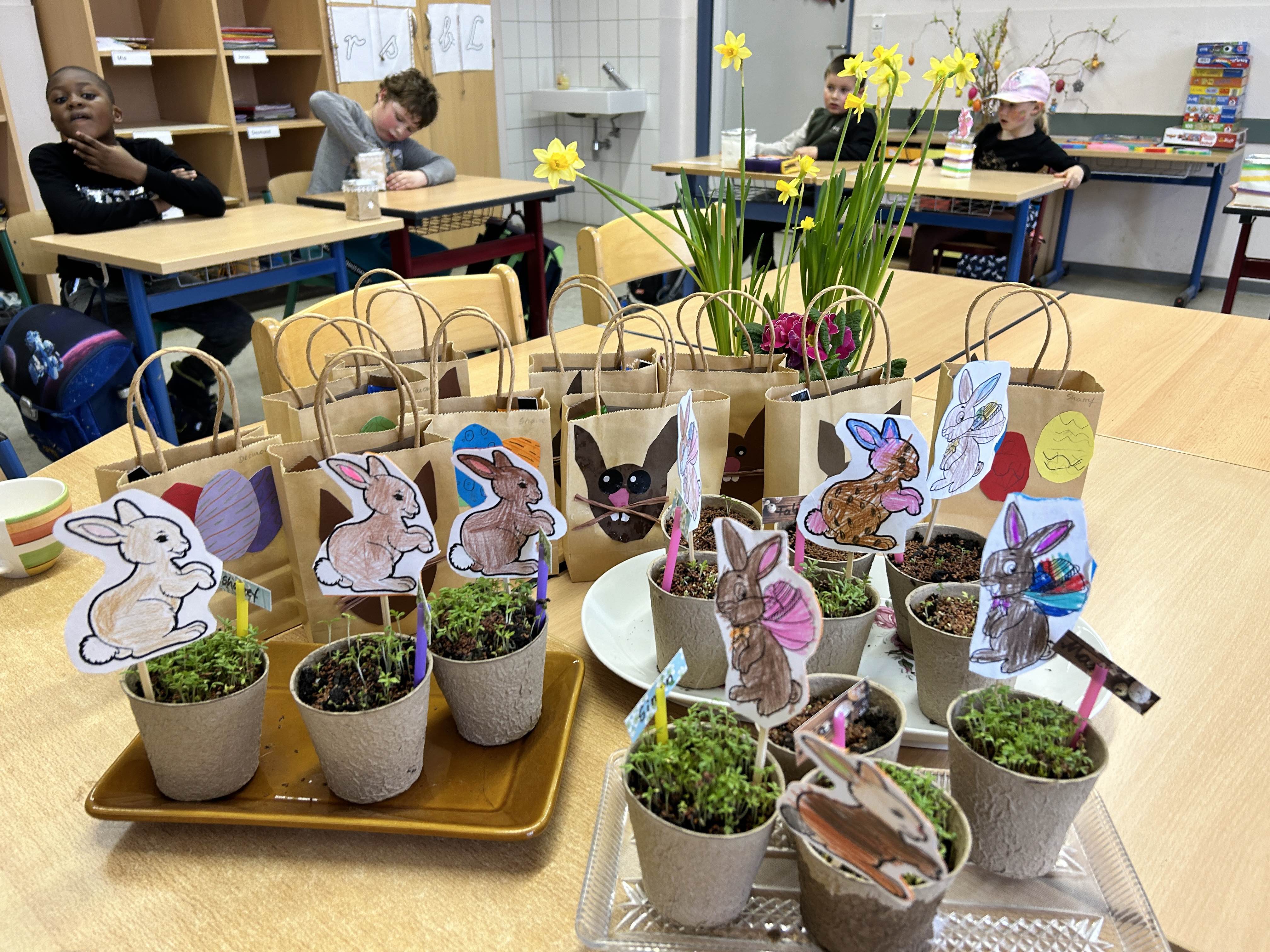 Der erste Frühlingstag zeigte sich noch nicht von der besten Seite. Leider nieselte es heute, am 21. März und der Osterhase konnte kaum Nester für die Kinder verstecken. Dennoch ließen sich die Schülerinnen und Schüler die Vorfreude auf das Osterfest nicht nehmen. In der Schule stimmten wir uns auf Ostern ein. In vielen Klassen fanden schöne Projekte mit einem gemeinsamen ausgedehnten Frühstück statt. Es wurden ansprechende Osterdekorationen hergestellt und nach Osterkörbchen gesucht. Ein paar Eindrücke stellen wir hier vor: