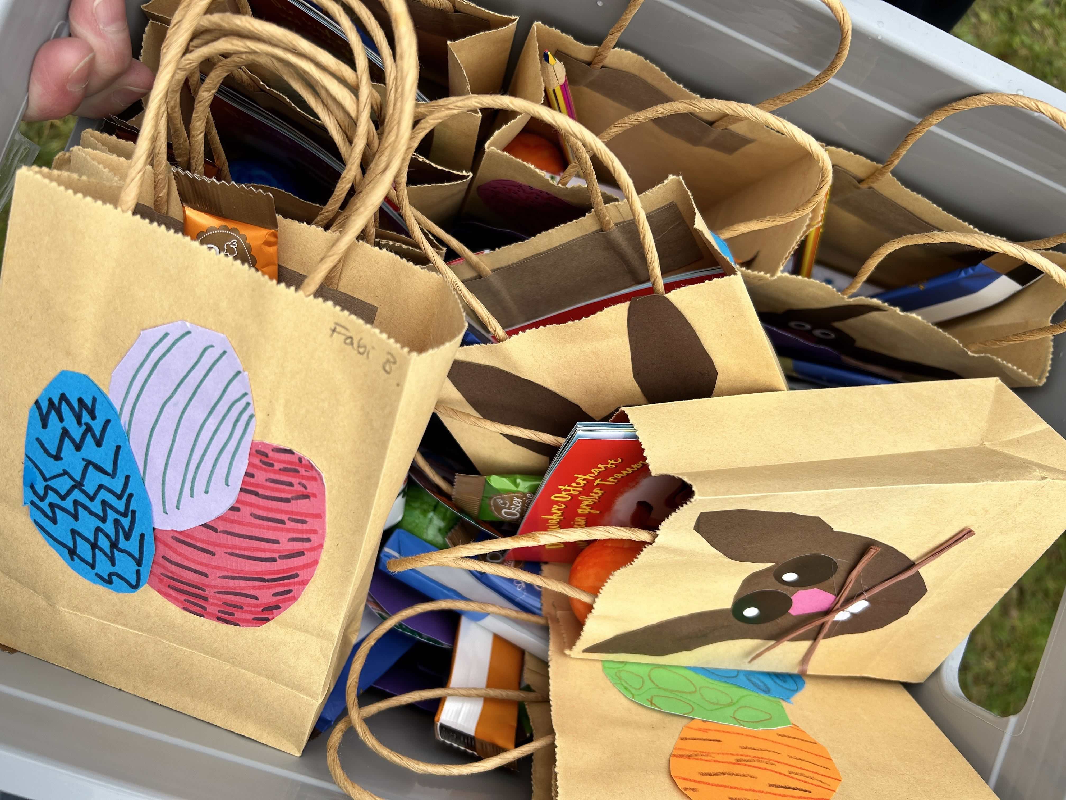 Herrlich anzusehende Küken aus Pappe und Kleister sind hervorgegangen aus dem Osterprojekt der 3b. Alle Ostertüten haben auch ihren Besitzer gefunden 🙂