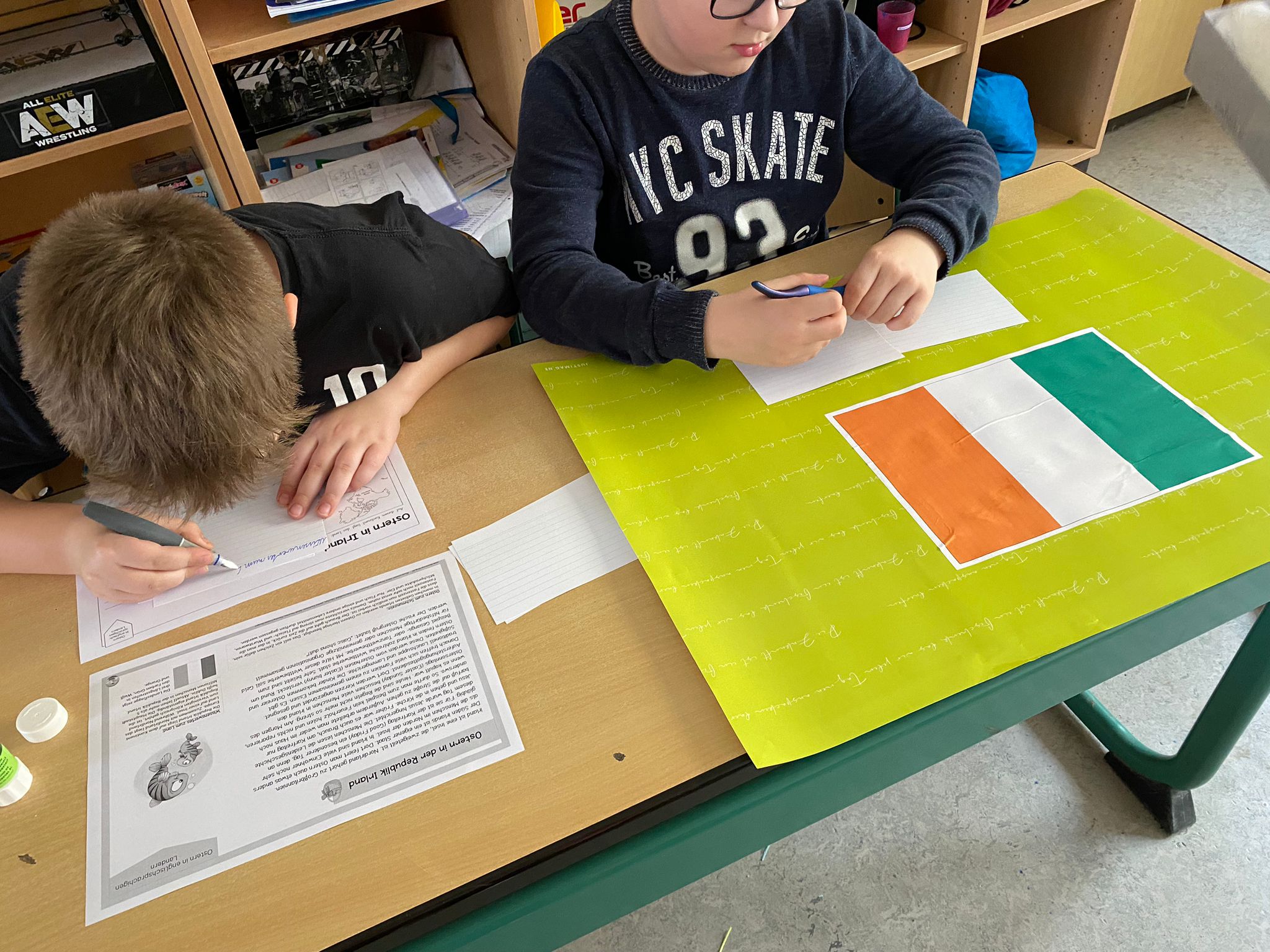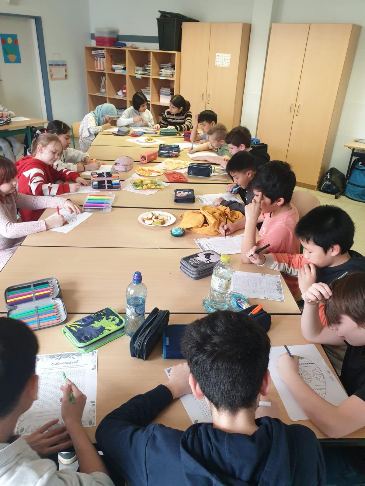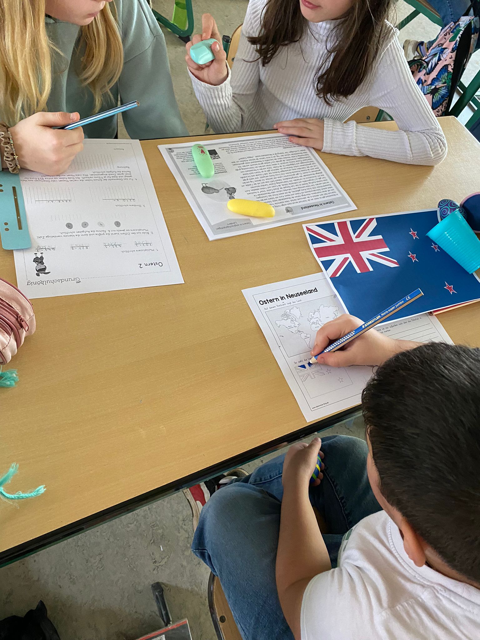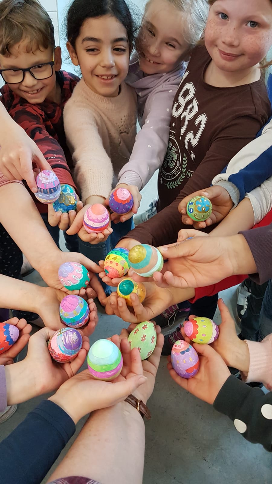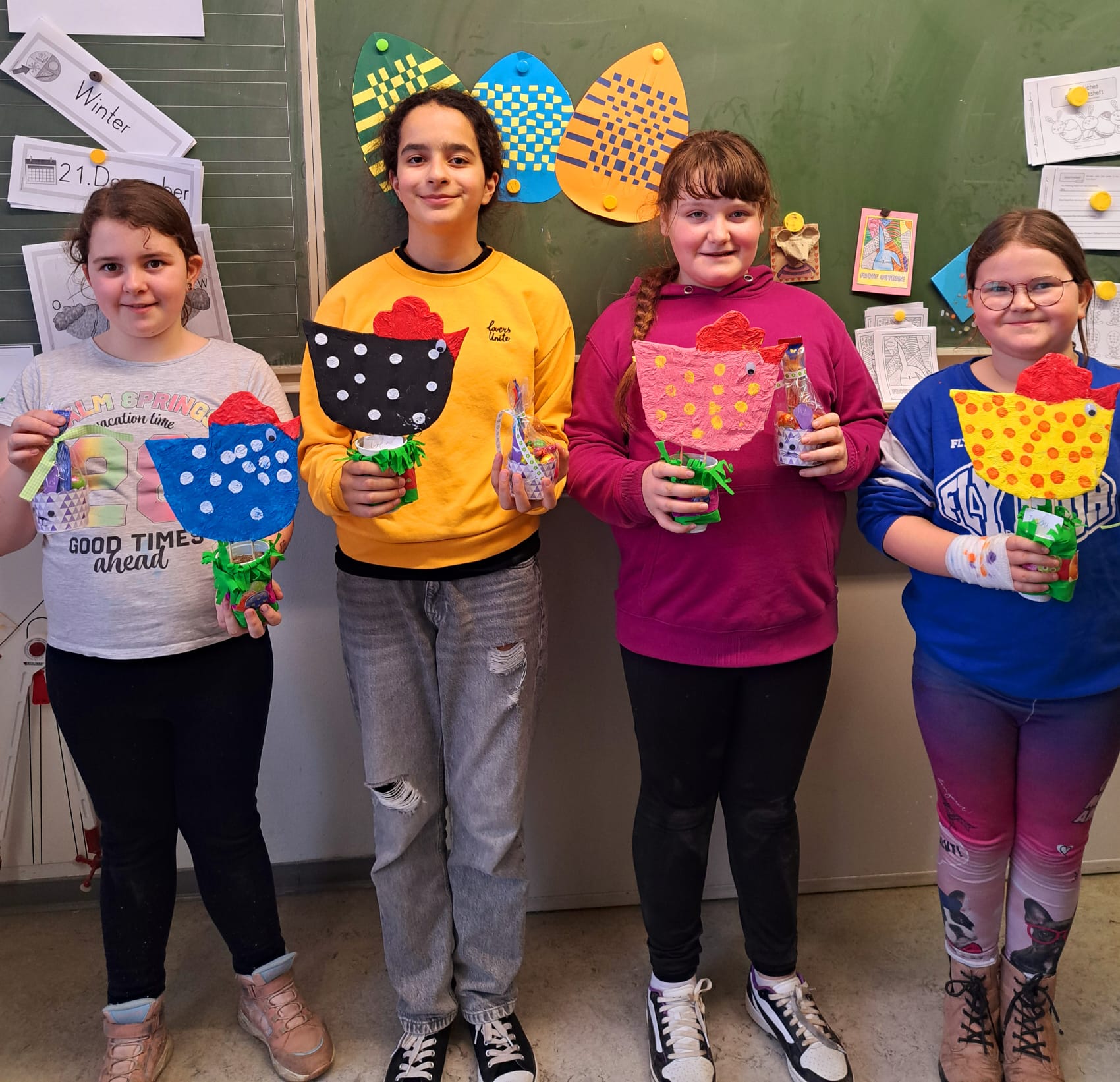 Die Klasse 4b hat gefrühstückt, Osterkarten gebastelt und Ostertraditionen anderer Länder erforscht, anschließend wurden die Osterüberraschungen geöffnet.