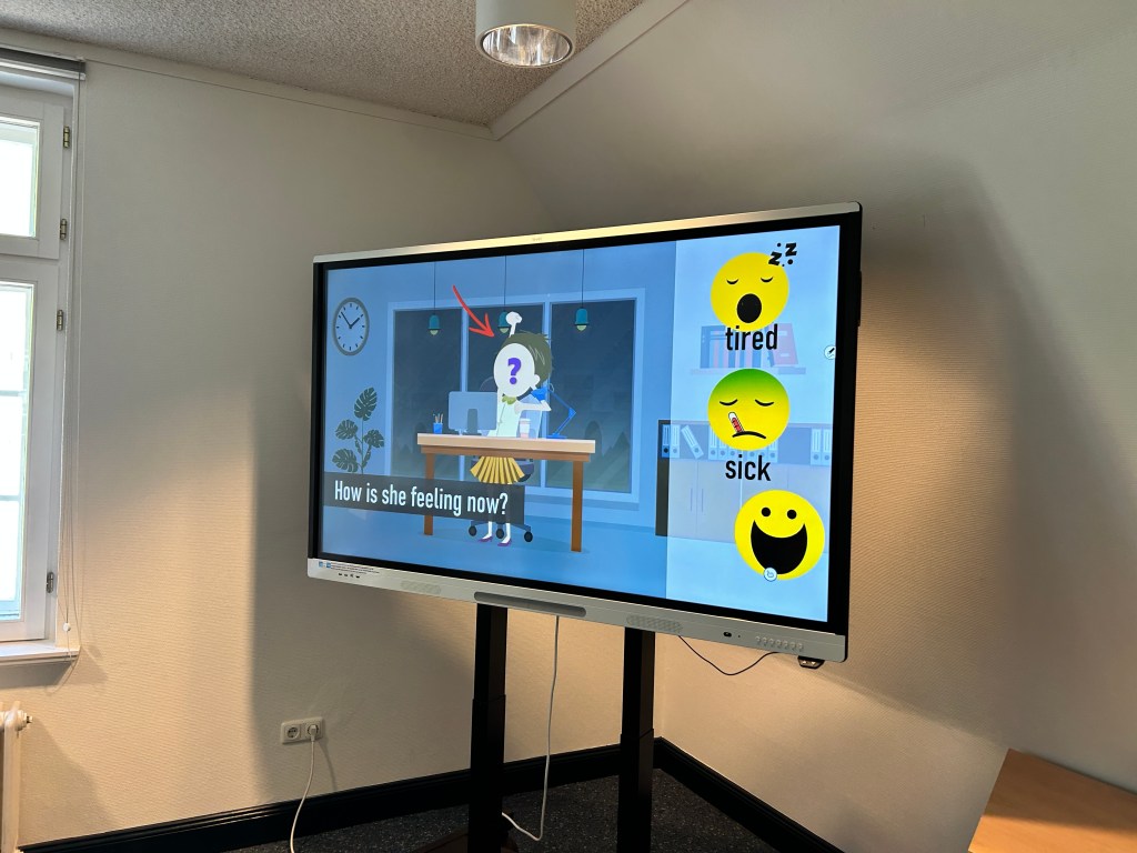 Die Klasse 4a besuchte im Rahmen des Englischunterrichts die Stadtbibliothek Güstrow. Wir haben in Englisch das Thema „Feelings“ (Gefühle) behandelt und können auf Englisch fragen, wie es jemanden geht und benennen, wie man sich fühlt. In der Stadtbibliothek bot sich die Möglichkeit das englische Kinderbuch „Happy – Dealing with feeling“ von Isabel Thomas als Boardstory, also auf dem Smartboard, anzuschauen.
