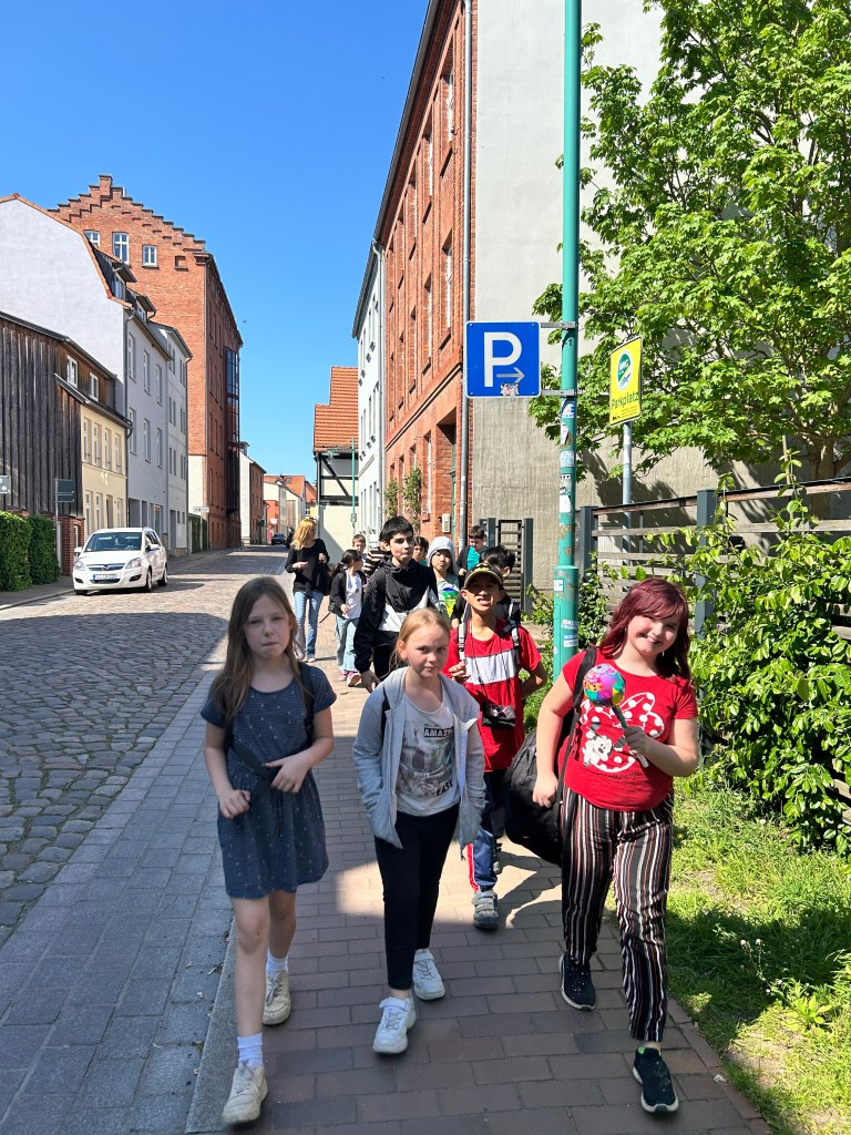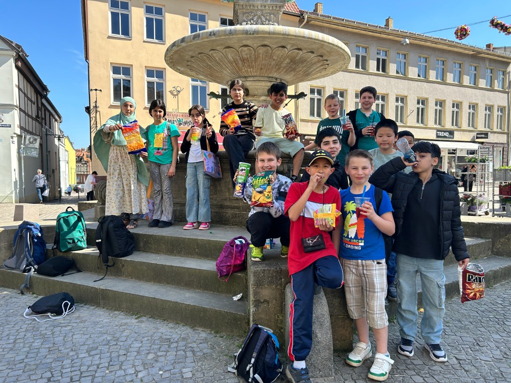 Wir haben spannende Erlebnisse gehabt und neue Eindrücke gewonnen. Nun wollten wir es uns noch ein bisschen schön machen in der Innenstadt. Die Schülerinnen und Schüler durften in Kleingruppen für 20 Minuten durch die Einkaufsstraße bummeln. Unser Treff- und Angelpunkt war der Brunnen. Weil alle Eltern die Erlaubnis gegeben haben und auch „Zaster“ mitgegeben haben, wurde fleißig geshoppt. Die Kinder waren sehr glücklich. Die Zeit hätte noch zweimal länger sein können. Das Geld wurde ausgegeben für Bubbleteas, Nagellacke, Lippenstifte, Süßigkeiten, Chips und Co. Mit Freunden macht das Bummeln und Erkunden einfach noch mehr Spaß. Und so ein klein bisschen Freiheit kann man doch genießen.