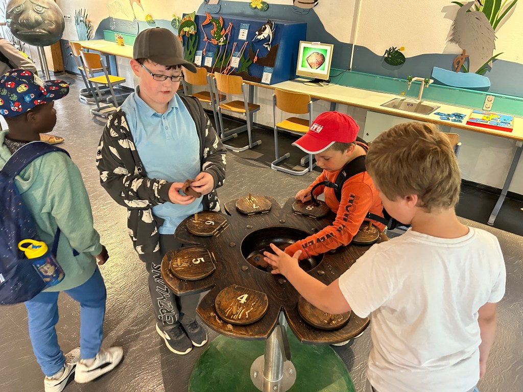 Im Wildpark angekommen, besuchten wir zuerst die Fische und schärften unsere Sinne an den verschiedenen Stationen zum Fühlen, Hören und Riechen.