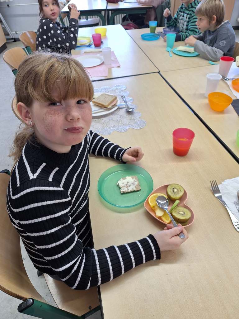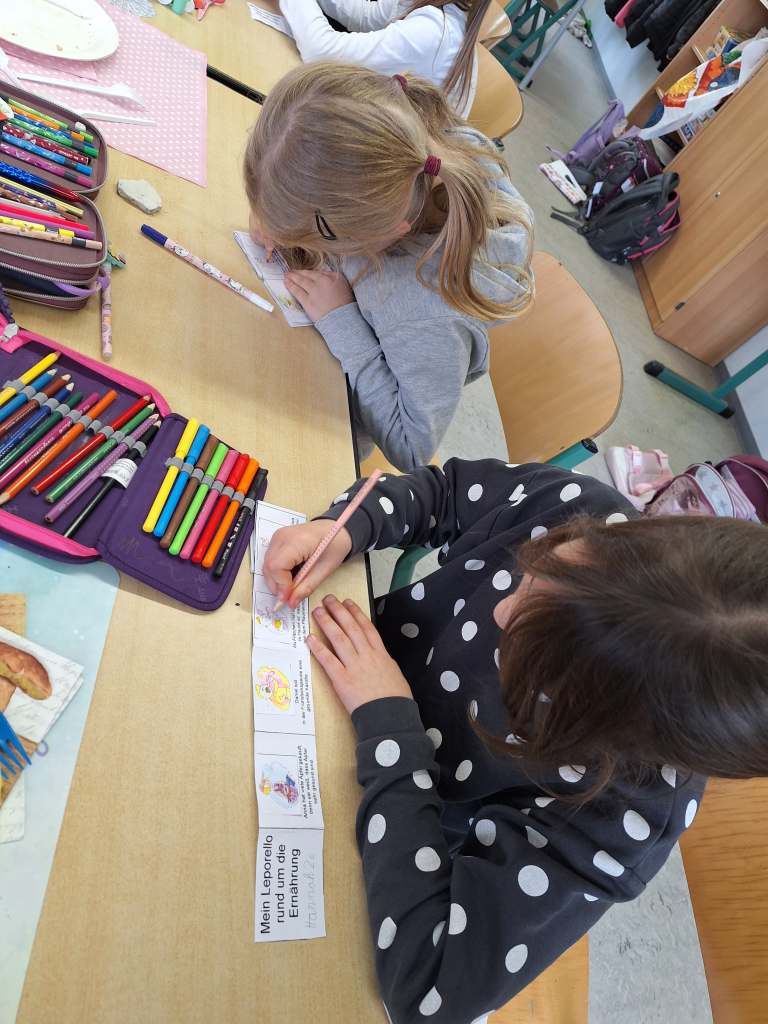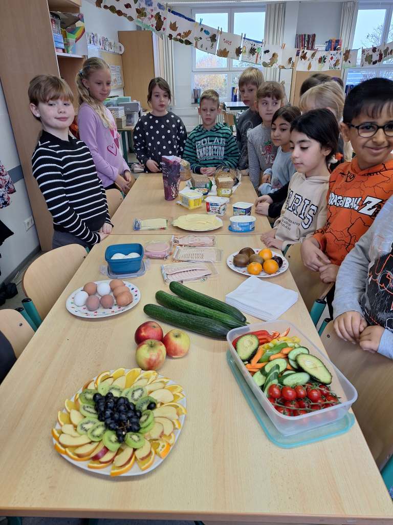 Zum Abschluss des Sachkundethemas „Gesundes Frühstück“ gab es heute in der Klasse 2c ein Projekt dazu. Ausgeschnittene Nahrungsmittelbilder wurden sortiert und in den Nahrungsmittelkreis geklebt. Danach gab es ein von den Eltern organisiertes „Gesundes Frühstück“. Anschließend bastelten die Kinder der 2c jeweils ein Leporello zum Thema „Ernährung“.