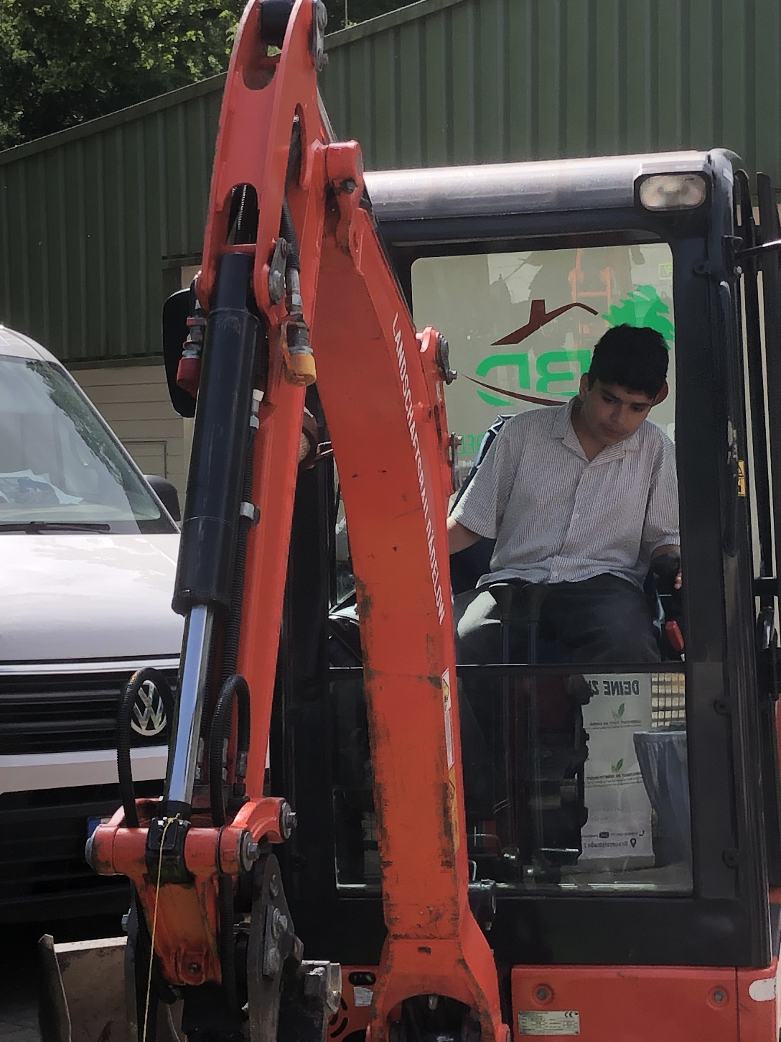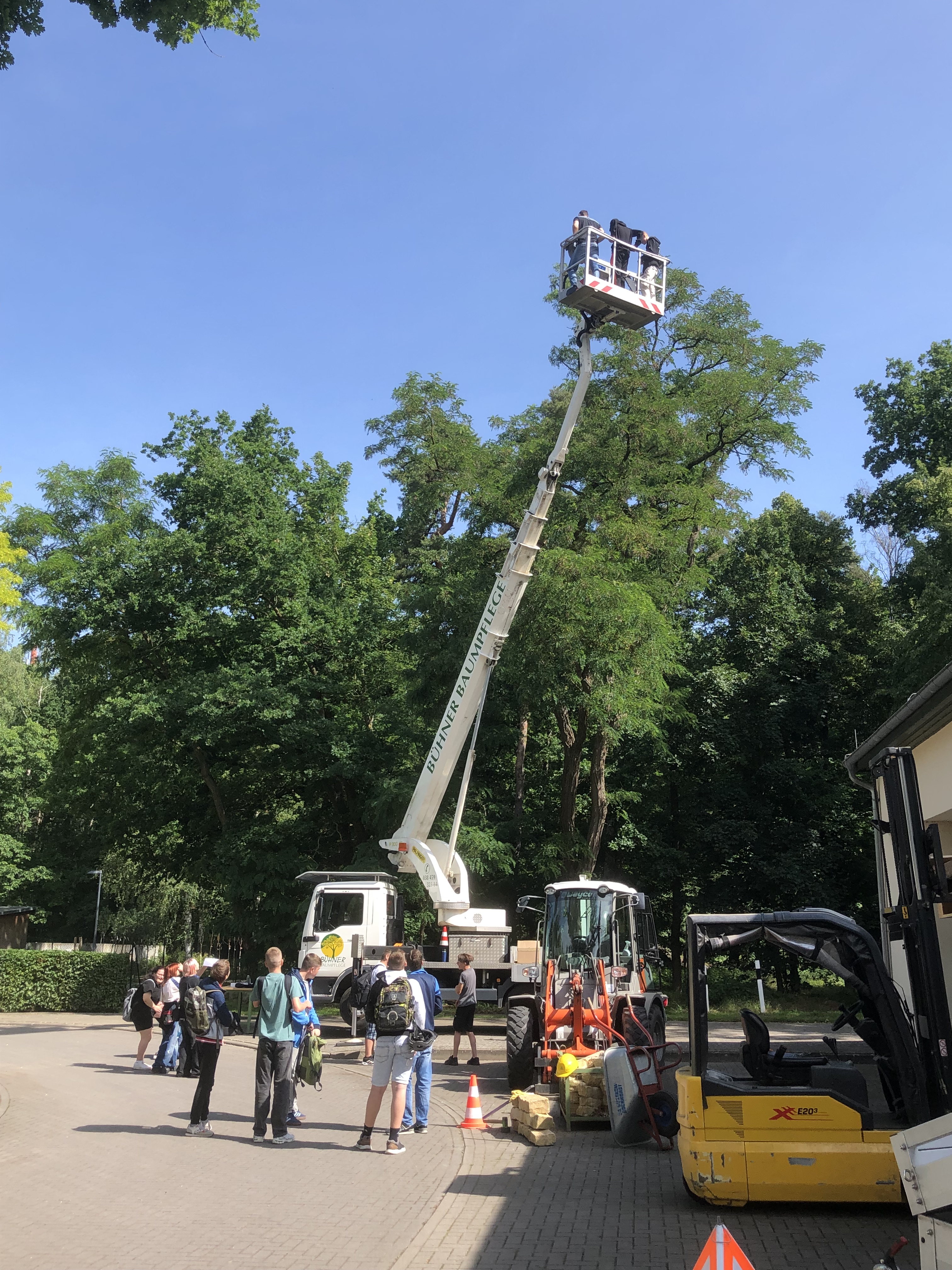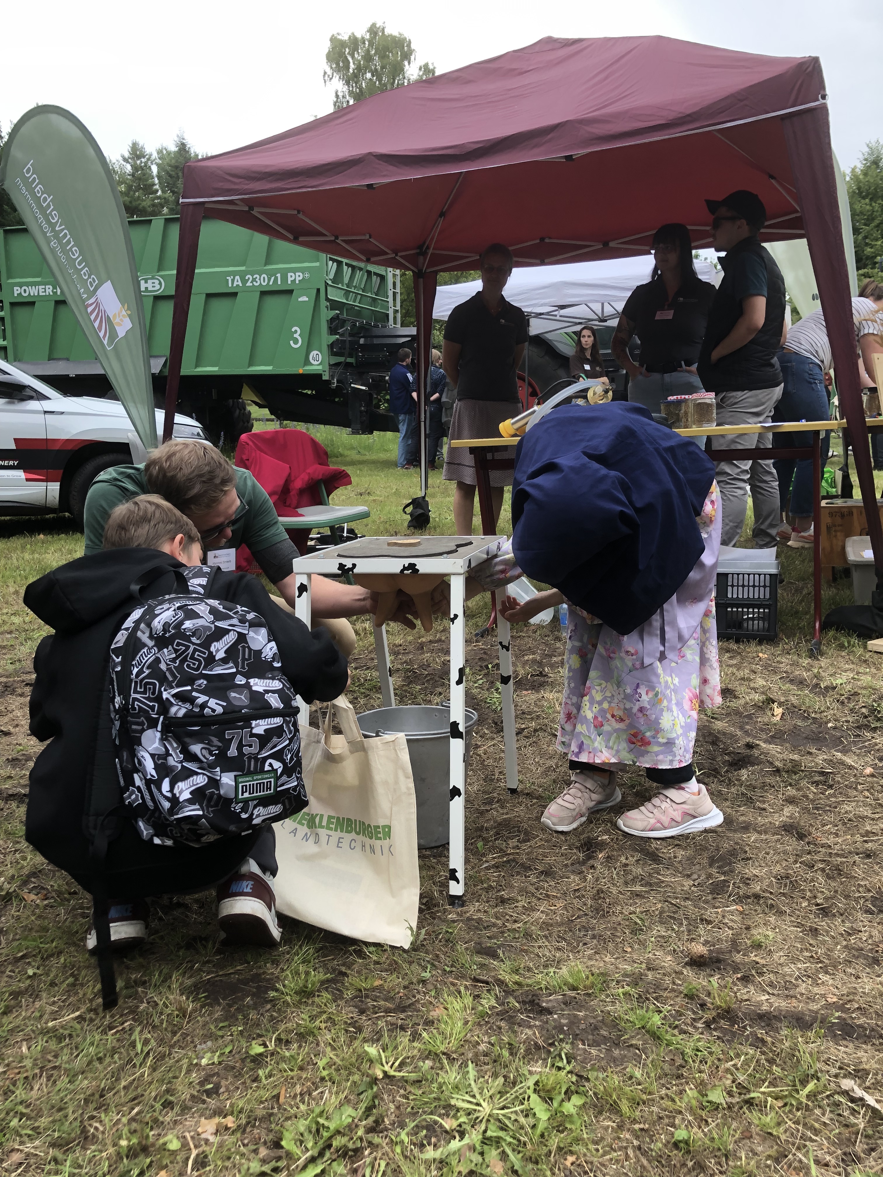 Das Pflanzen, Melken, Baggerfahren oder die Arbeit mit einem Blasgerät konnte zum Beispiel ausprobiert werden. Die Aussicht von einer großen Hebebühne was erstaunlich. Auch ganz viele große Land- und Forstmaschinen konnten besichtigt und bestiegen werden.