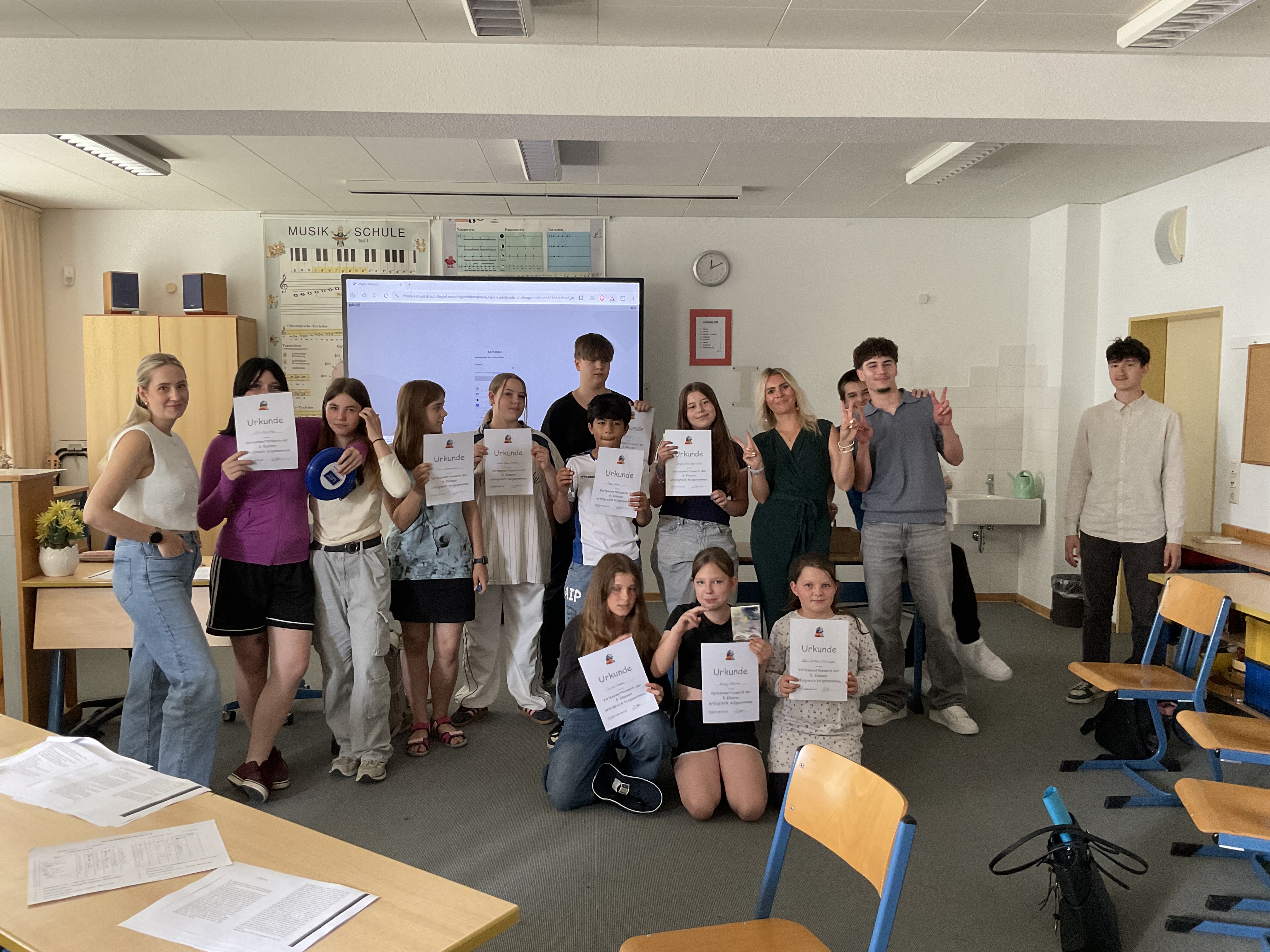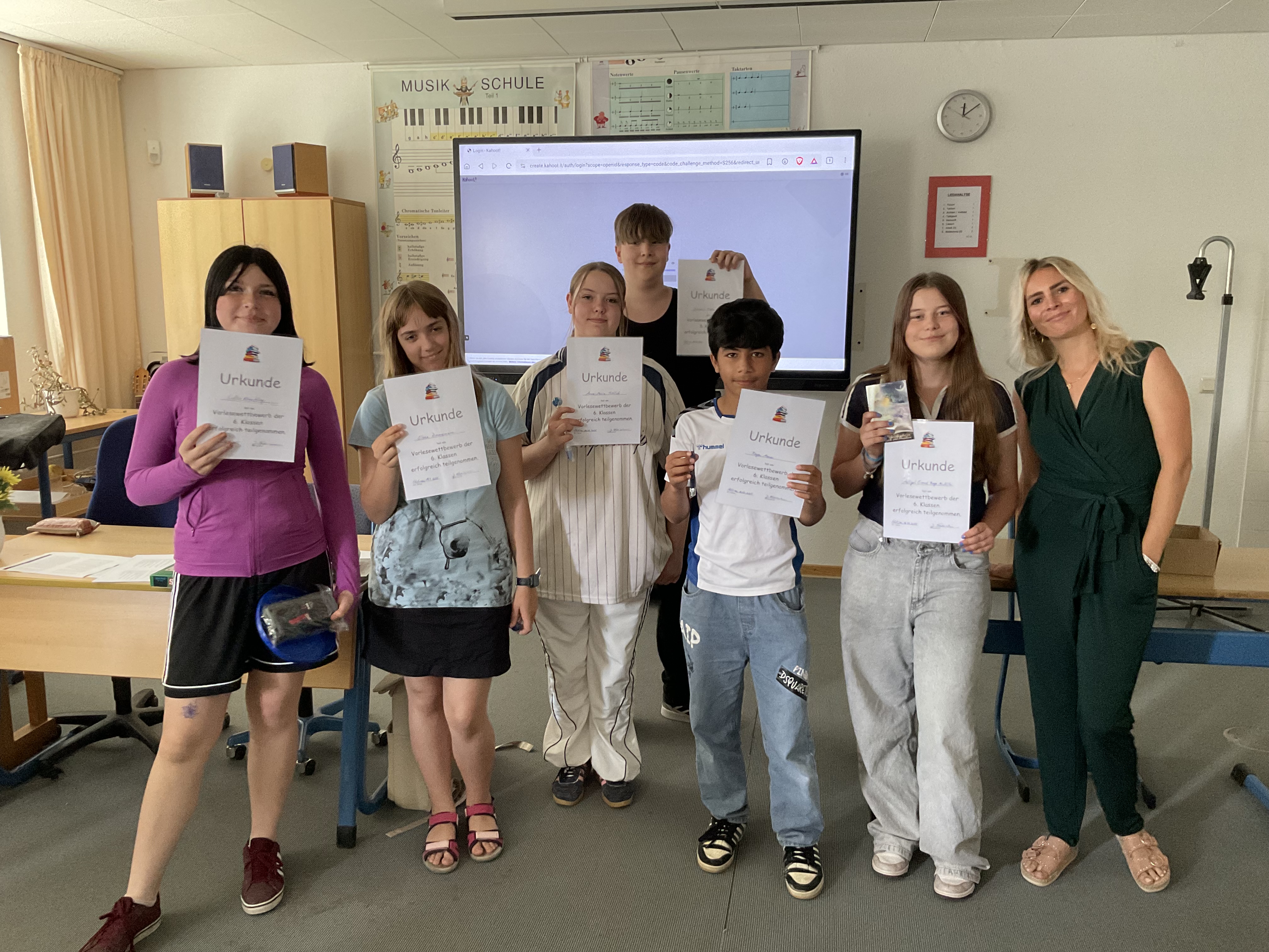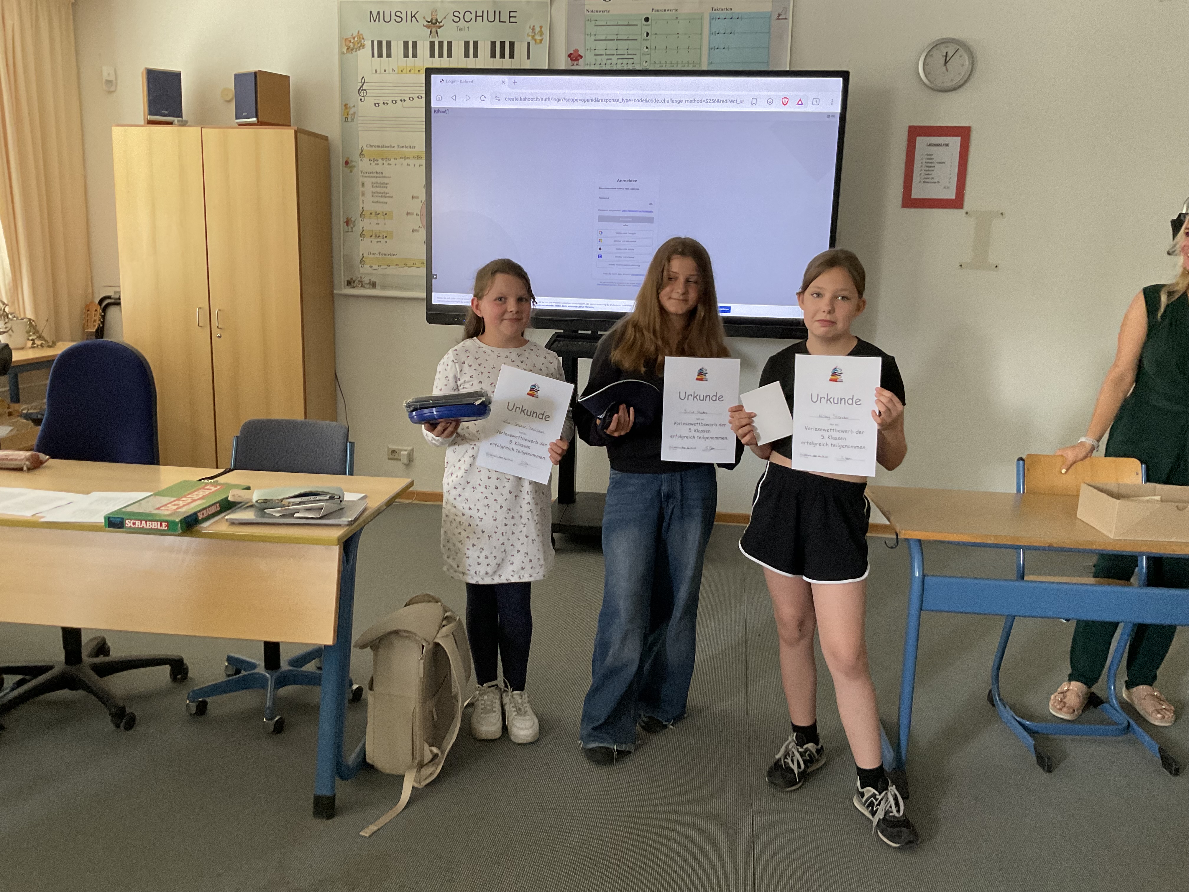 In der Jahrgangsstufe 5 belegte Miley aus der Klasse 5a den ersten Platz, Julie aus der Klasse 5c den zweiten Platz und Lea Sophie aus der Klasse 5a den dritten Platz. In der Jahrgangsstufe 6 gewann Aaliyah aus der Klasse 6b, den zweiten Platz belegte Johannis ebenfalls aus der Klasse 6b und der dritte Platz ging an Lotte aus der Klasse 6c.