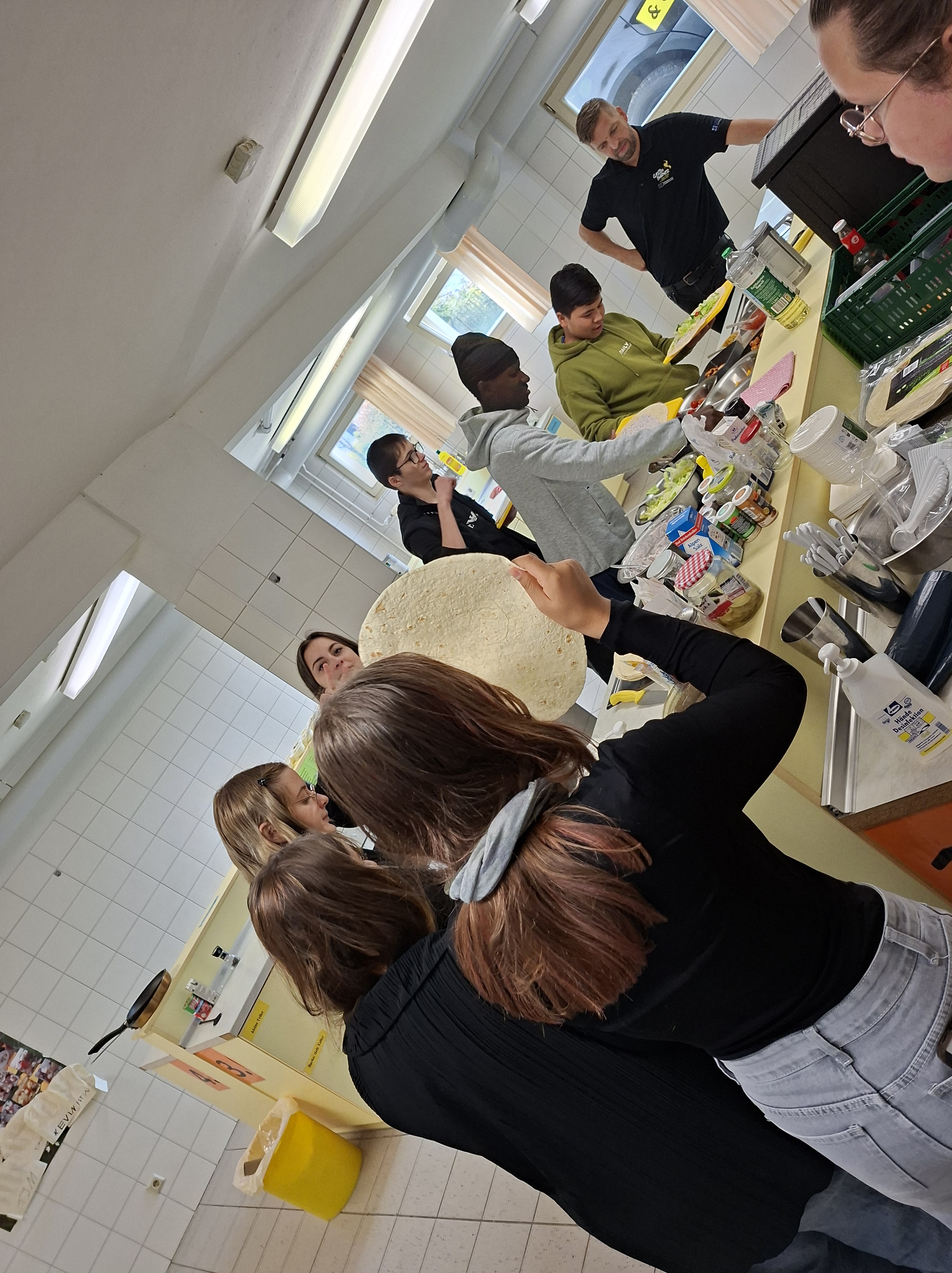Am 30.09. und 1.10.2025 besuchte das Team vom „Gastroburner“ unsere Schule, um den Schülerinnen und Schülern einen Einblick in die verschiedenen Berufe der Gastronomie zu geben. Das Team hat sich zunächst vorgestellt und anschließend den Jungen und Mädchen ein Berufsinformationsvideo gezeigt. Es fand auch ein Austausch über die Berufswünsche der Schüler*innen statt. Das Highlight war das Kochen der verschiedenen Gerichte.