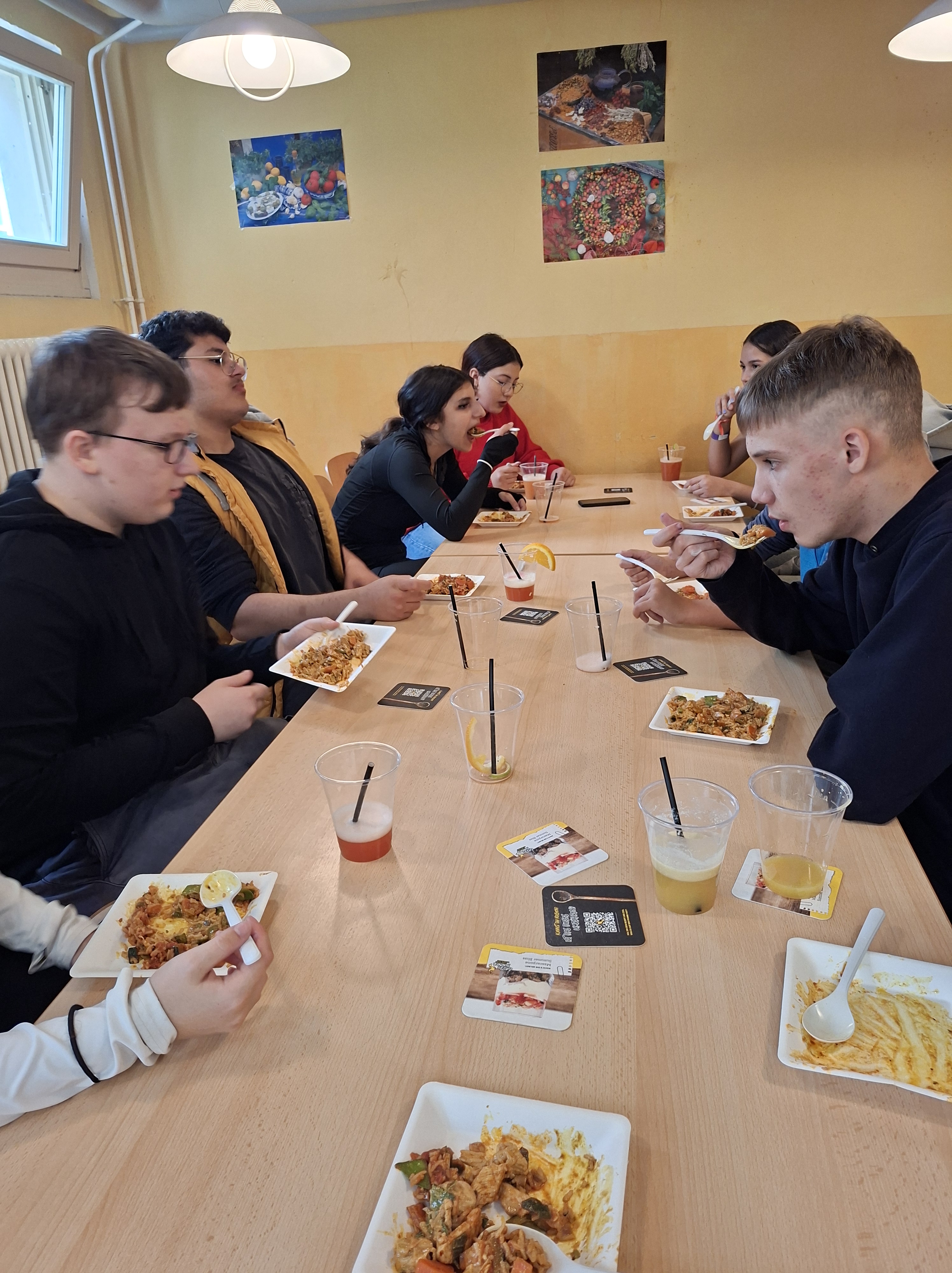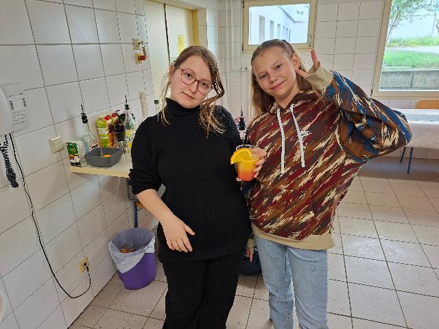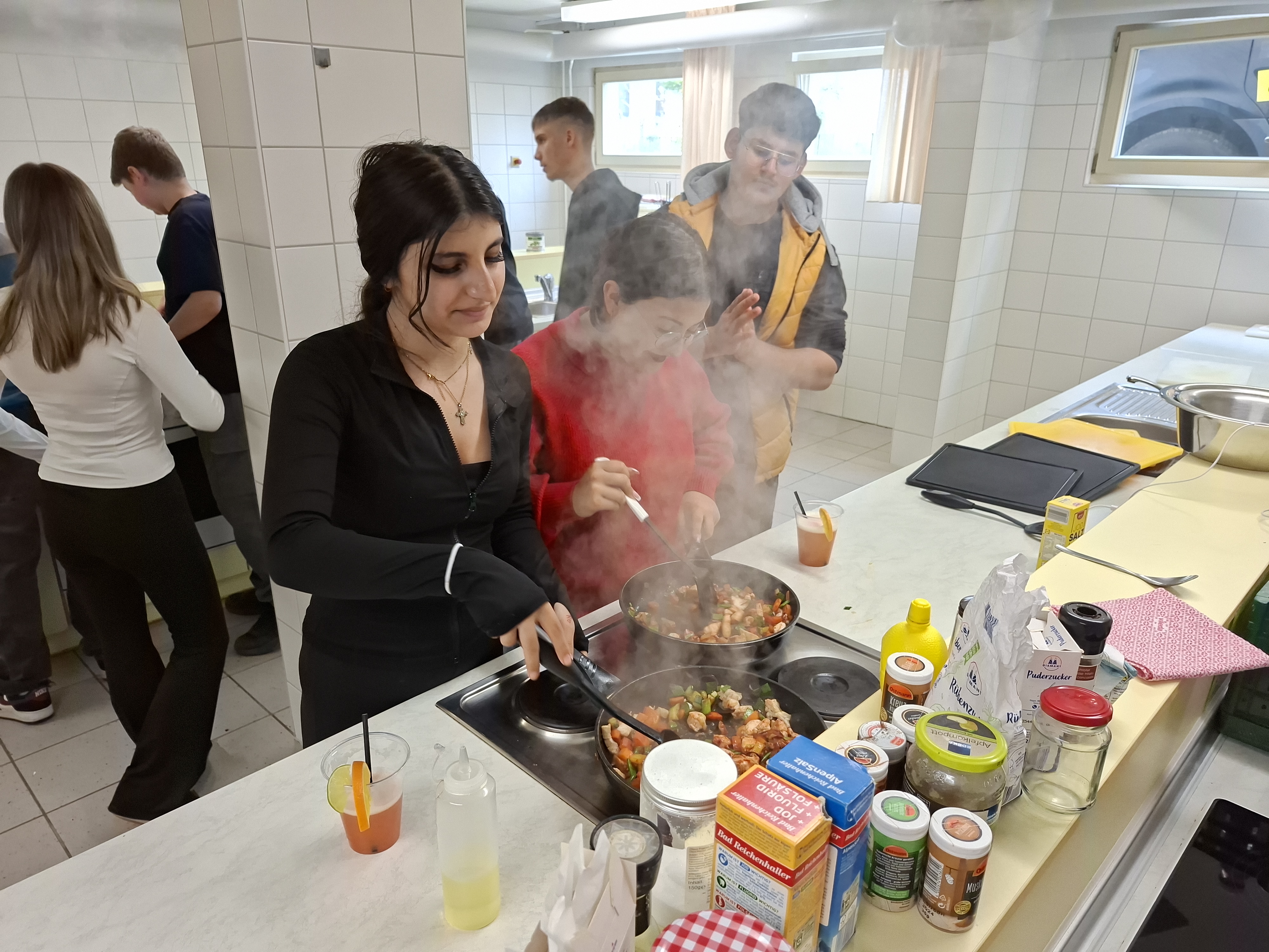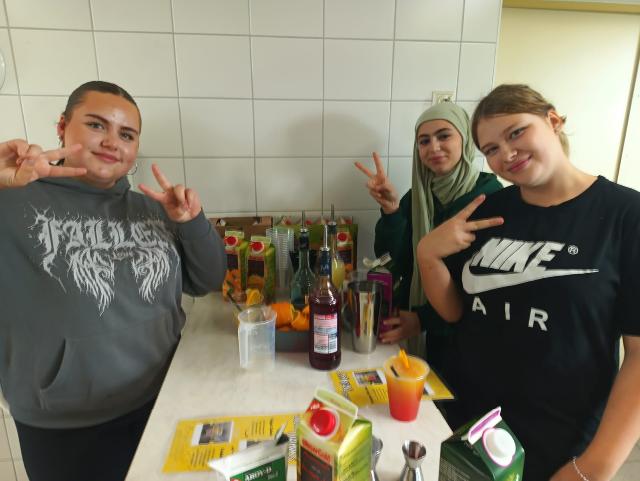 Eine Gruppe bereitete schmackhafte Wraps zu. Die andere Gruppe kochte ein leckeres Chickencurry. Außerdem kreierte eine weitere Gruppe eine köstliche Nudelpfanne. Mh, lecker! Weiterhin wurden vier verschiedene Cocktails an der Minibar selbst gemixt. Ein genüssliches Dessert bildete den Abschluss.