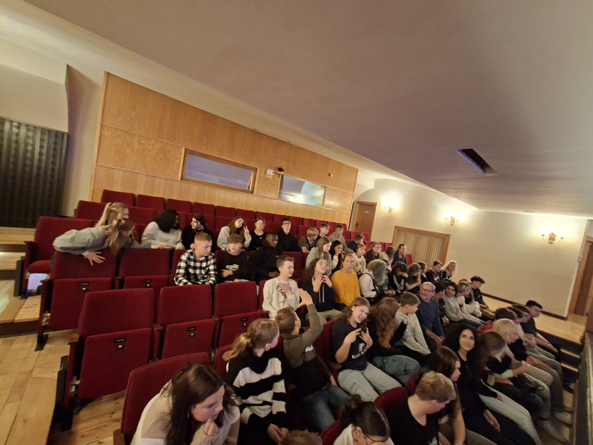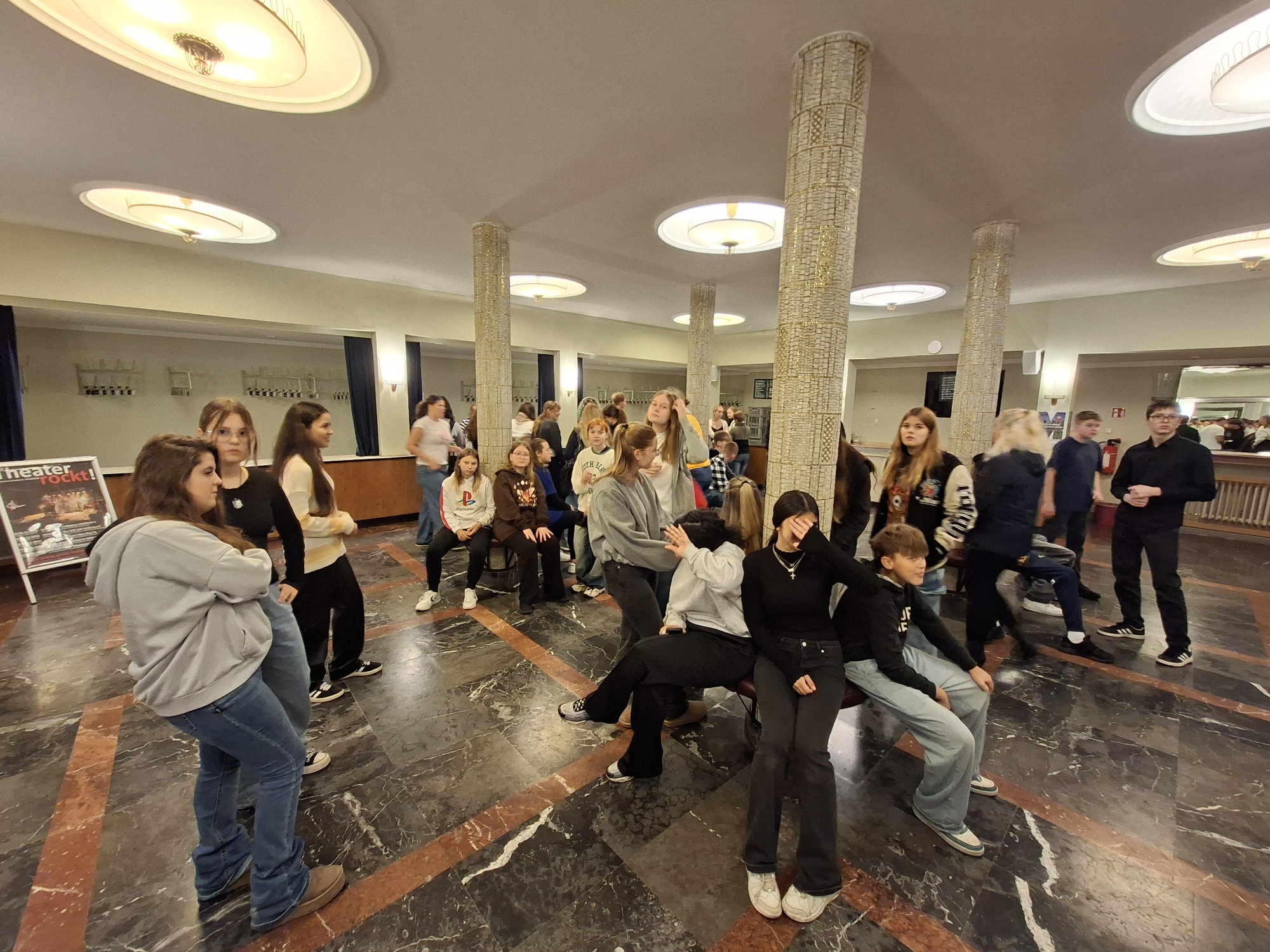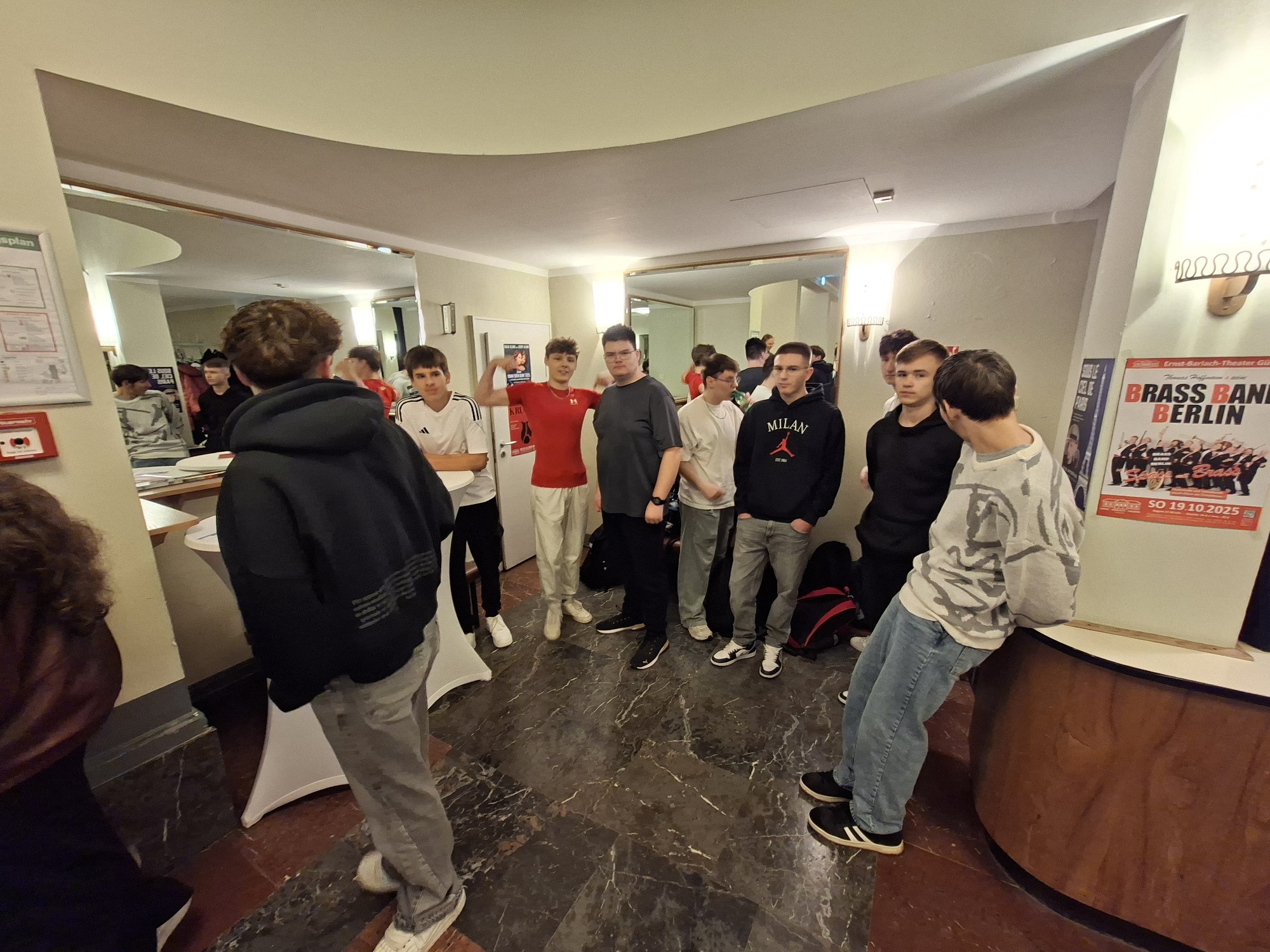 Am Mittwoch, den 8. Oktober 2025 waren die Klassen 8a, 8b, 10a und 10b im Ernst-Barlach-Theater in Güstrow. Dort sahen die Schülerinnen und Schüler das Theaterstück „Sticks and Stones“ – ein kraftvolles Stück in englischer Sprache über Zivilcourage, Mitgefühl und Verantwortung.