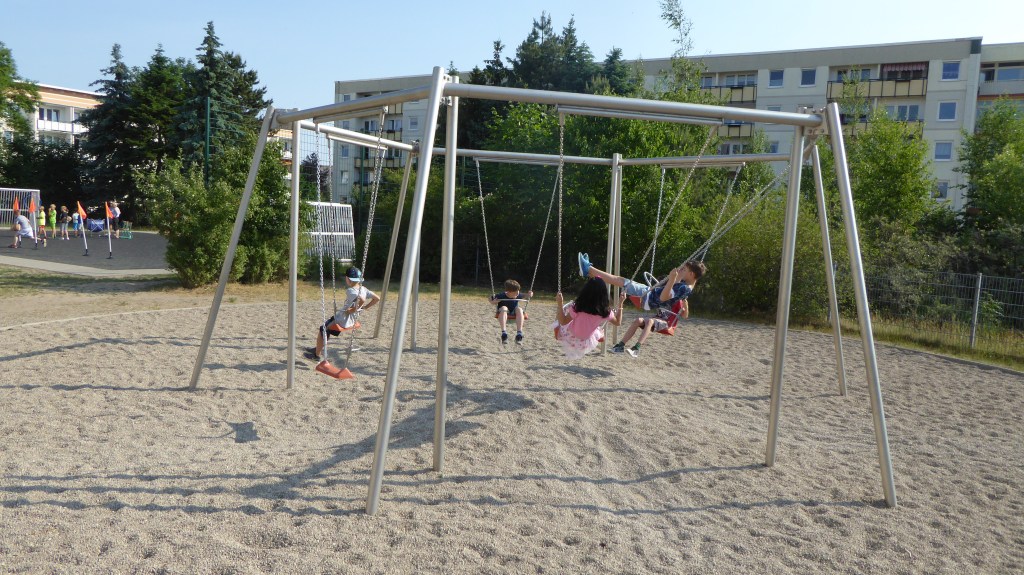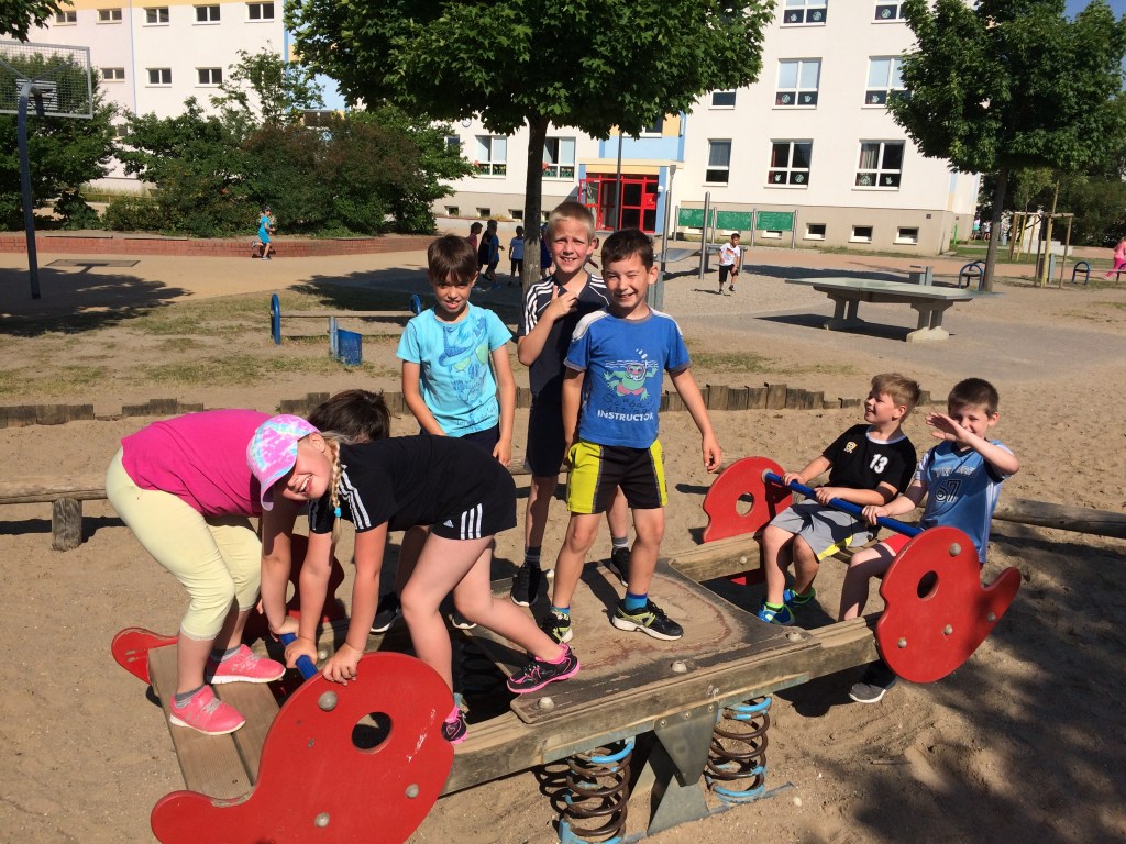 Gegenwärtig wird in Unterrichtsstunden zu 45 Minuten sowie in Blöcken von 90 Minuten unterrichtet. Nach der 1. Stunde haben die Kinder eine fünfzehnminütige Frühstückspause. Jeweils nach der 2. und 4. Stunde gibt es eine Hofpause auf unserem Schulhof. Dieser ist vom Gelände der Regionalschule abgetrennt und bietet mit seinem Spielplatz den Kindern ausreichend Möglichkeiten, um sich zu bewegen und neue Kraft für das „Stillsitzen“ zu tanken.